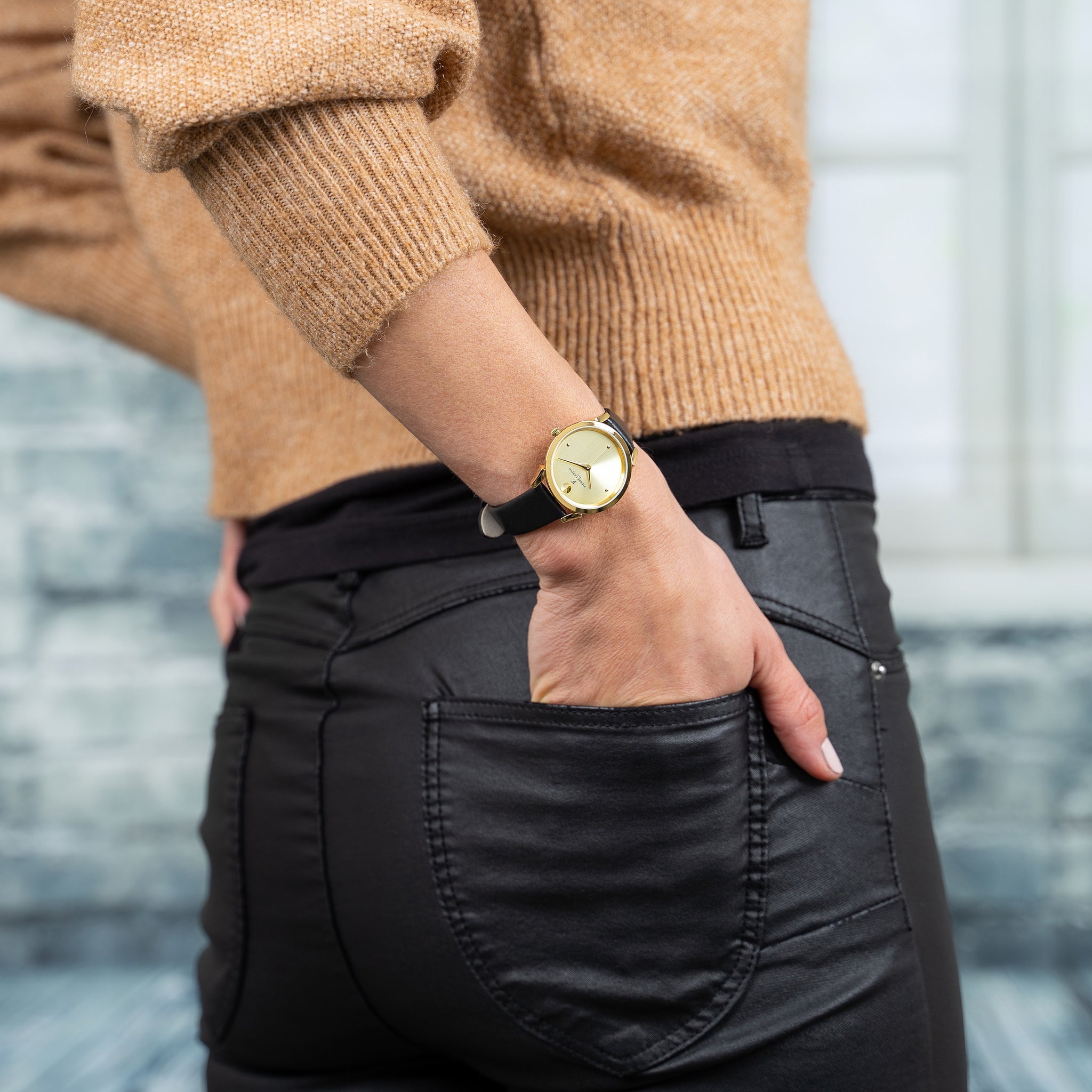 Pierre Cardin Women's Black Leather, Gold Case | Cpi.2533