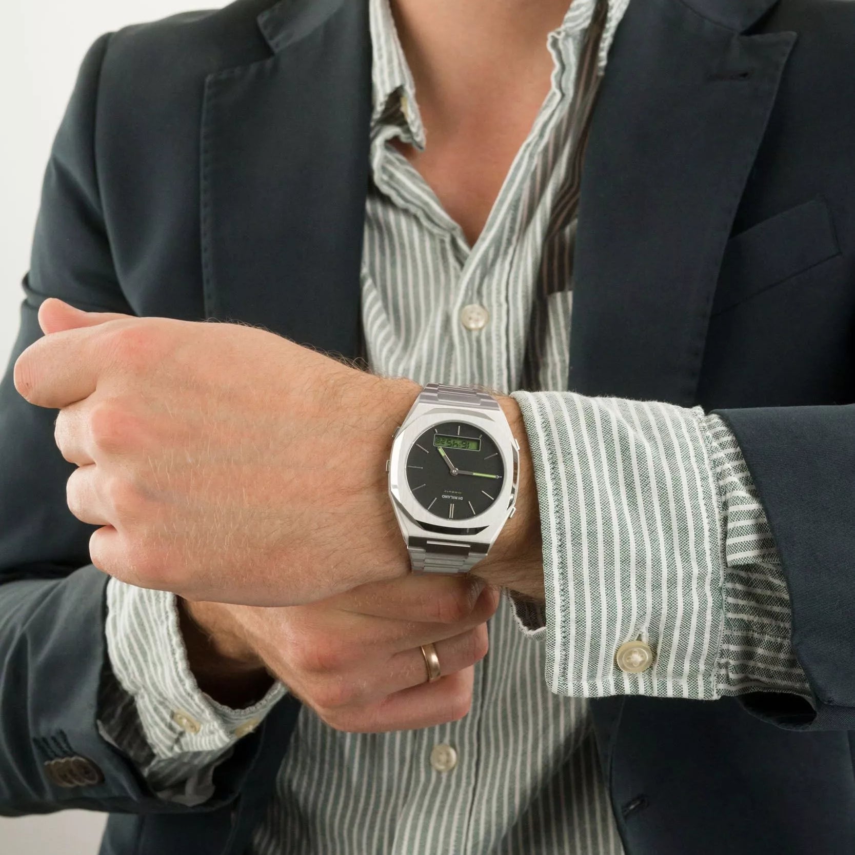 Introducing the D1 MILANO D1-DGBJ01 watch, a stunning blend of sophistication and functionality. With its striking black dial and luxurious stainless steel case and band, this elegant timepiece is perfect for the modern man. Boasting 5 ATM water resistance and precise quartz movement, this watch is designed for those who appreciate style and performance. Make a statement—explore more!