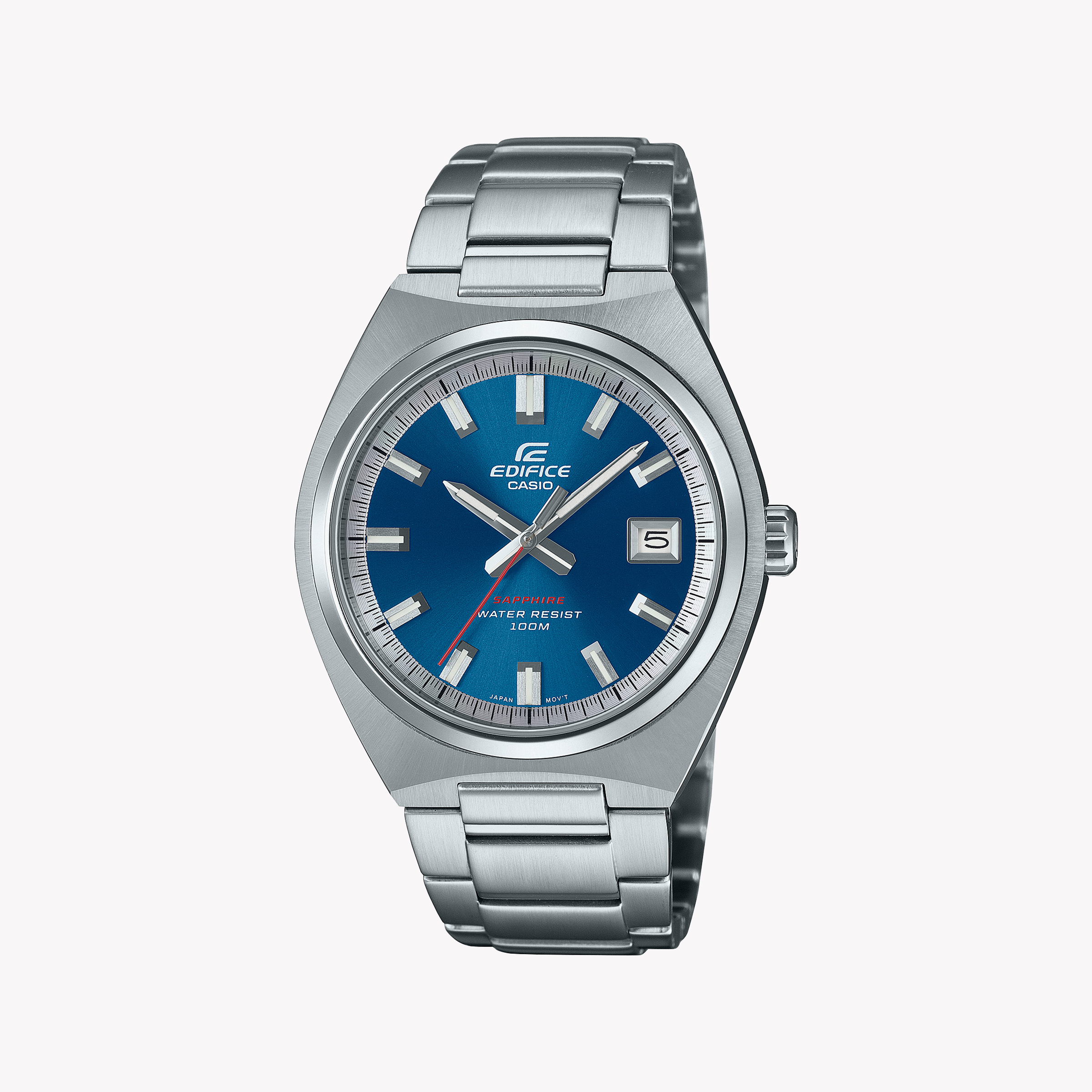 Introducing the CASIO EDIFICE EFB-109D-2AVEF: a bold blend of precision and style. With a striking blue dial, robust stainless steel finish, and 10 ATM water resistance, this elegant men's watch is perfect for any occasion.