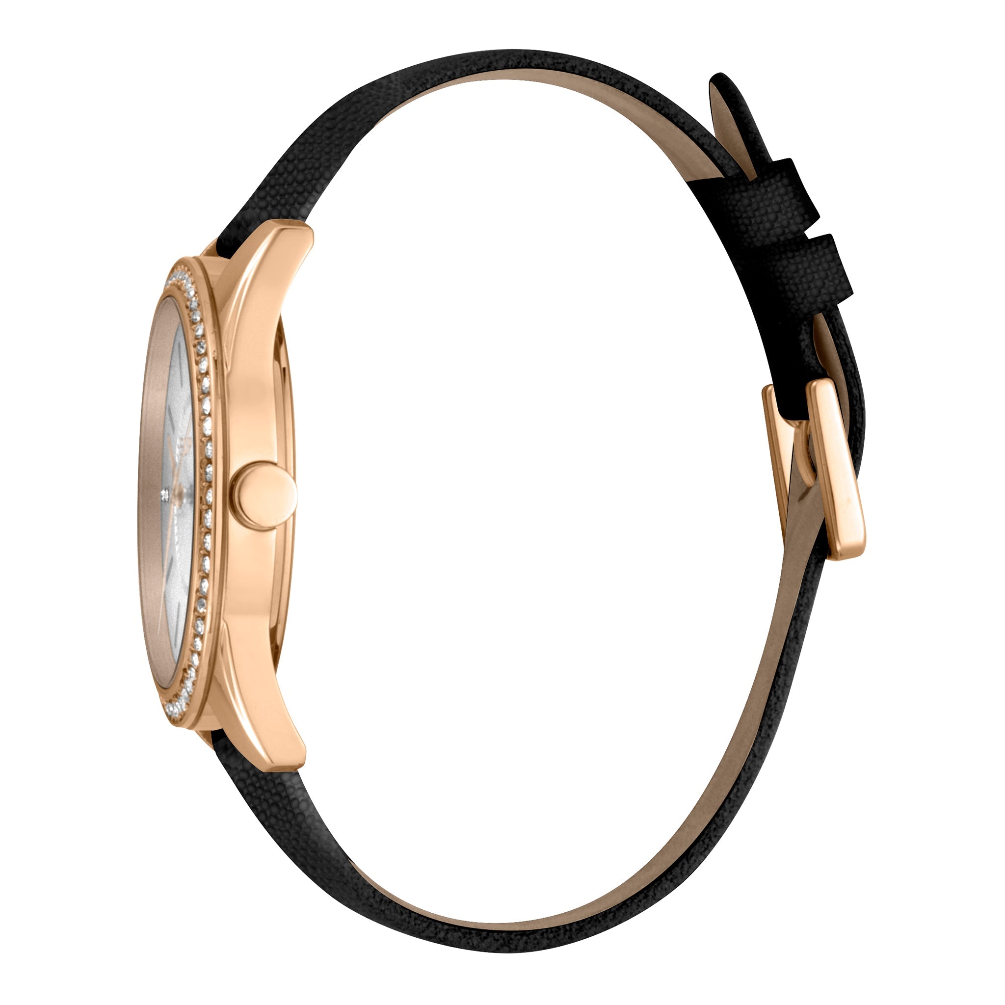 Esprit Women's Watch With Rose Gold Stainless Steel Case And Black Leather Band