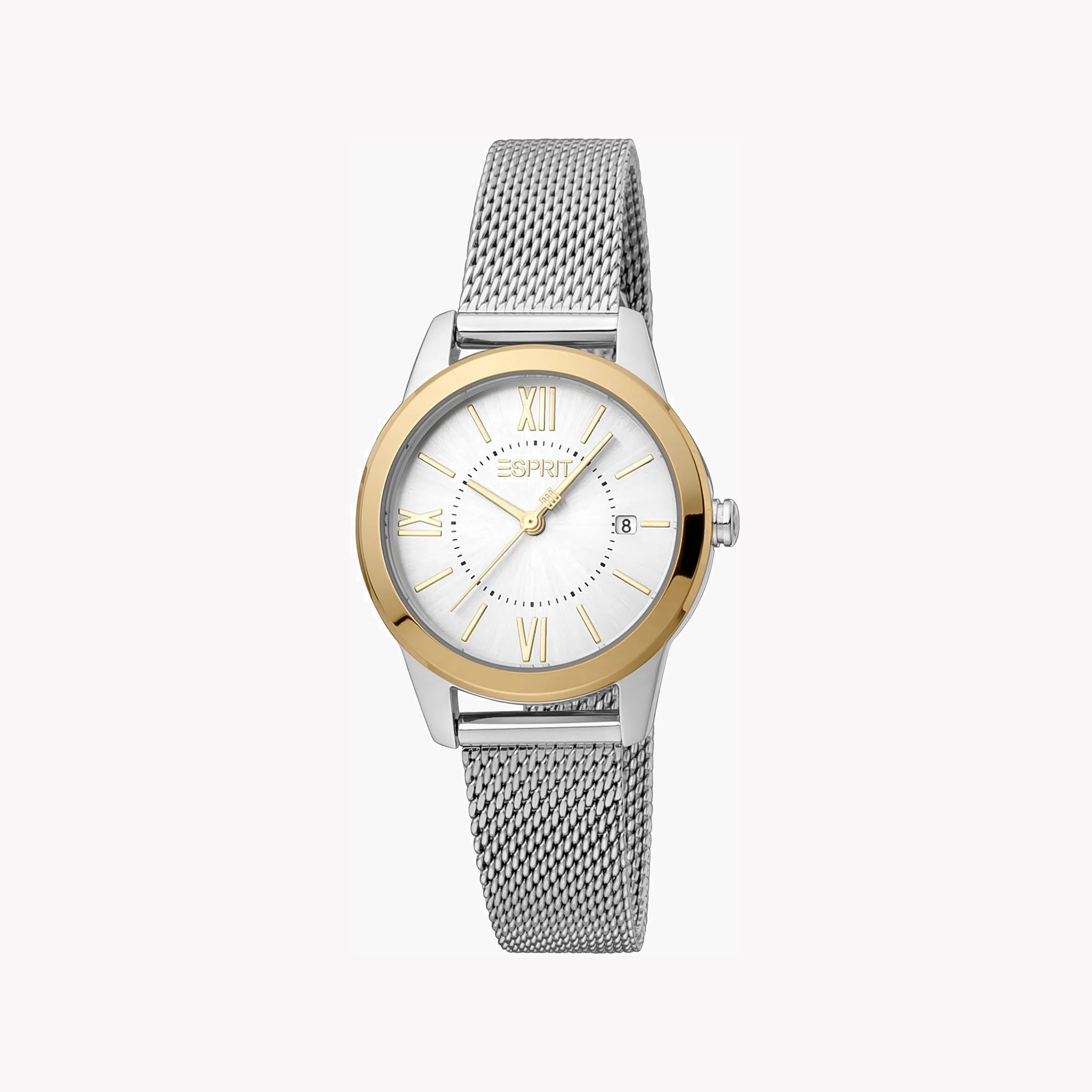 It's time to upgrade your style. Our Esprit Women's watch is the perfect accessory for any outfit. With a Silver Stainless Steel band and a Silver dial, this watch has everything you need. It's been carefully designed to be both timeless and stylish so you look good from day to day. This Esprit watch is made of Stainless Steel which makes it very durable and reliable. It has a Stainless Steel Round Silver & Gold case with a diameter of 30 mm it will be a great addition to your outfit
