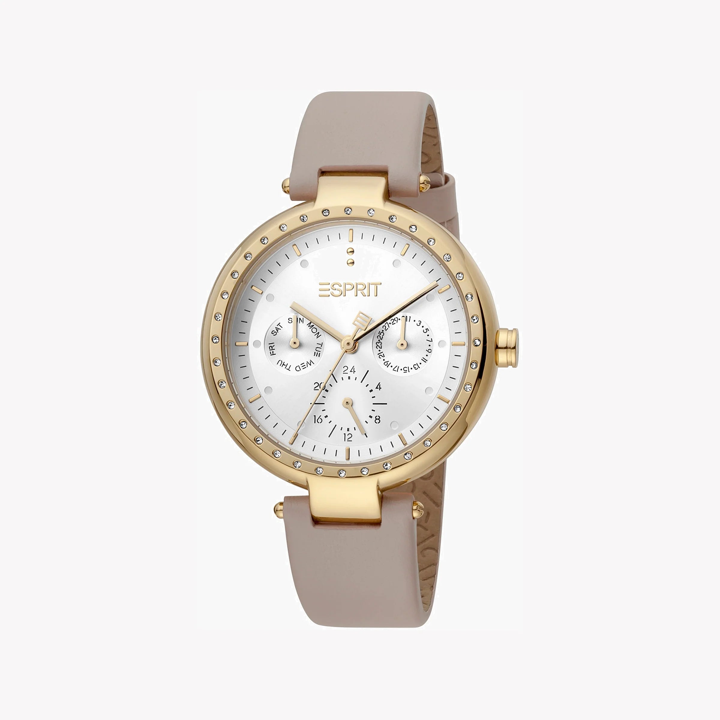 It's time to upgrade your style. Our Esprit Women's watch is the perfect accessory for any outfit. With a Beige Leather band and a Silver dial, this watch has everything you need. It's been carefully designed to be both timeless and stylish so you look good from day to day. This Esprit watch is made of Stainless Steel which makes it very durable and reliable. It has a Stainless Steel Round Gold case with a diameter of 38 mm it will be a great addition to your outfit