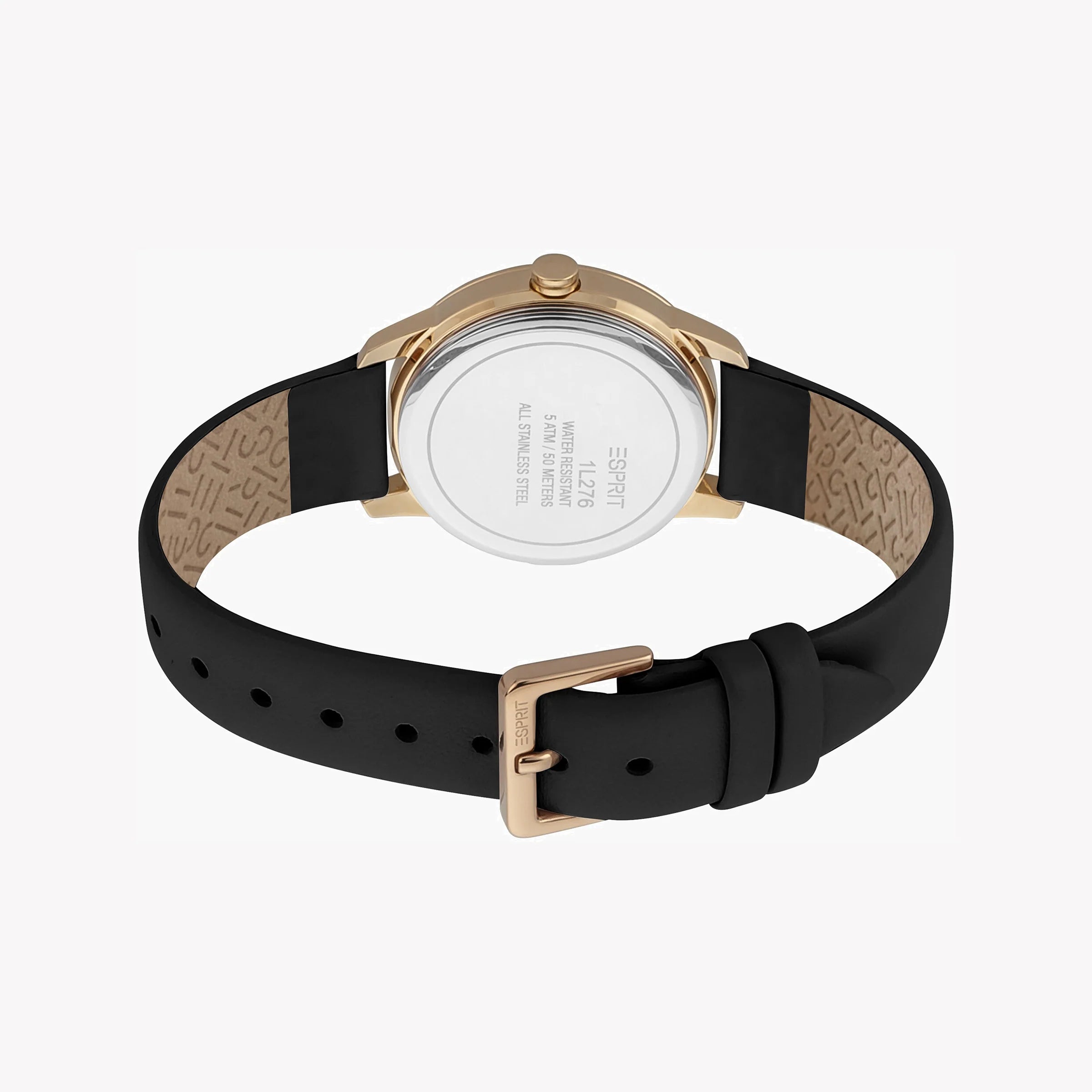 Esprit Women's Black Leather Watch, Silver Dial | Es1l167m0035
