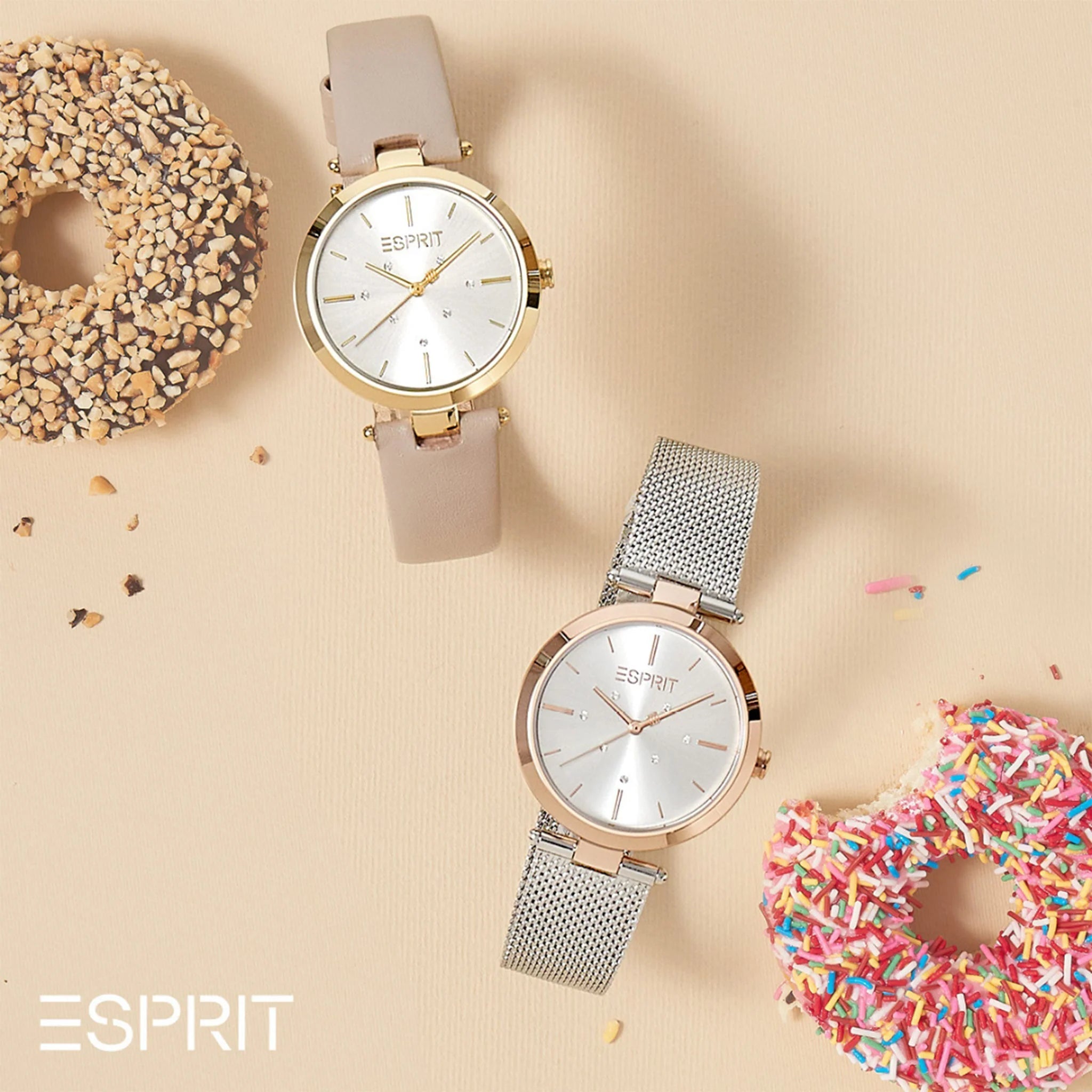 Esprit Women's Beige Leather Watch, Silver Dial | Es1l192m0025