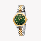 Dual-Tone Brilliance: The striking combination of silver and gold on both the case and band creates a sophisticated yet bold look, making this watch a standout accessory for any occasion.