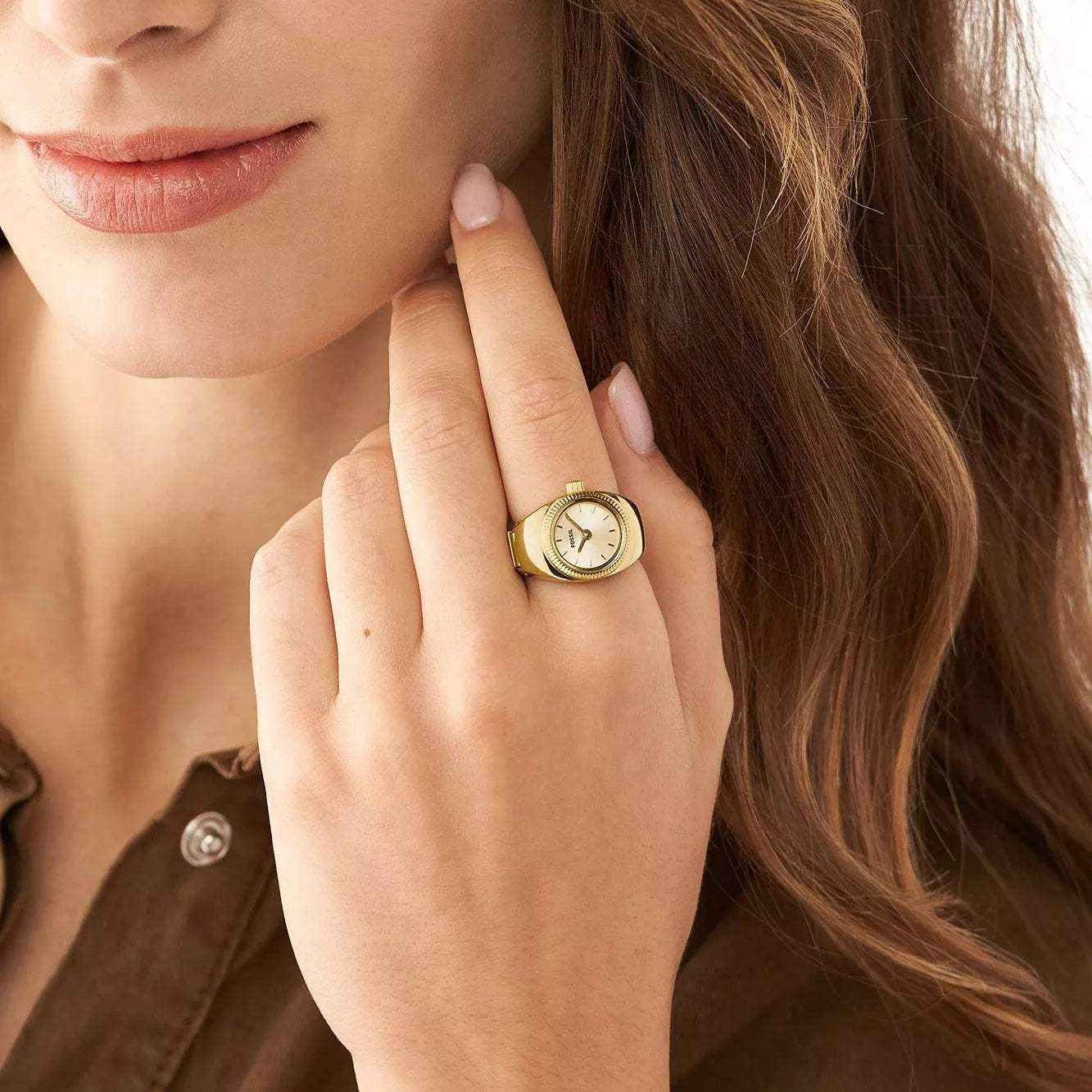 Fossil Women's Gold Ring Watch, Beige Dial | Es5246