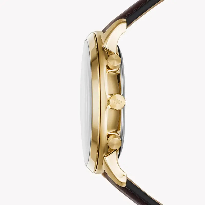 Fossil Men's Gold Stainless Steel, Dark Brown Leather | Fs5763