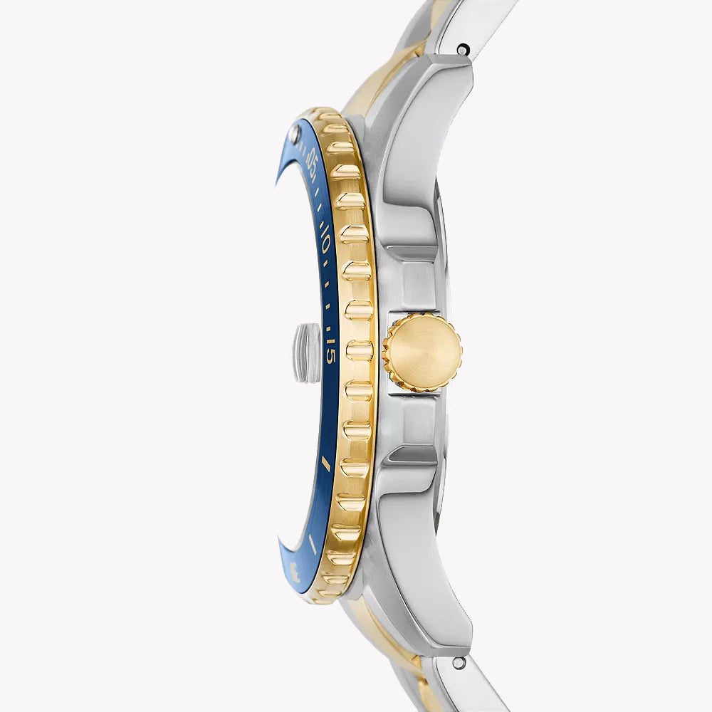 Fossil Men's Stainless Steel Blue Dive Watch, Silver/Gold | Fs6034