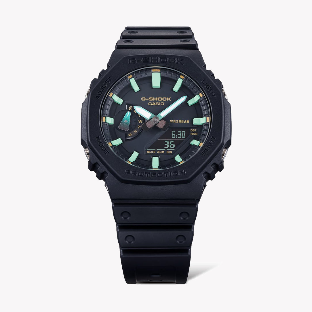 Elevate your style for work or leisure with the GA-2100RC-1ADR G-SHOCK—a watch that merges rugged functionality with a modern, all-black aesthetic, making it a must-have accessory for any wardrobe.
