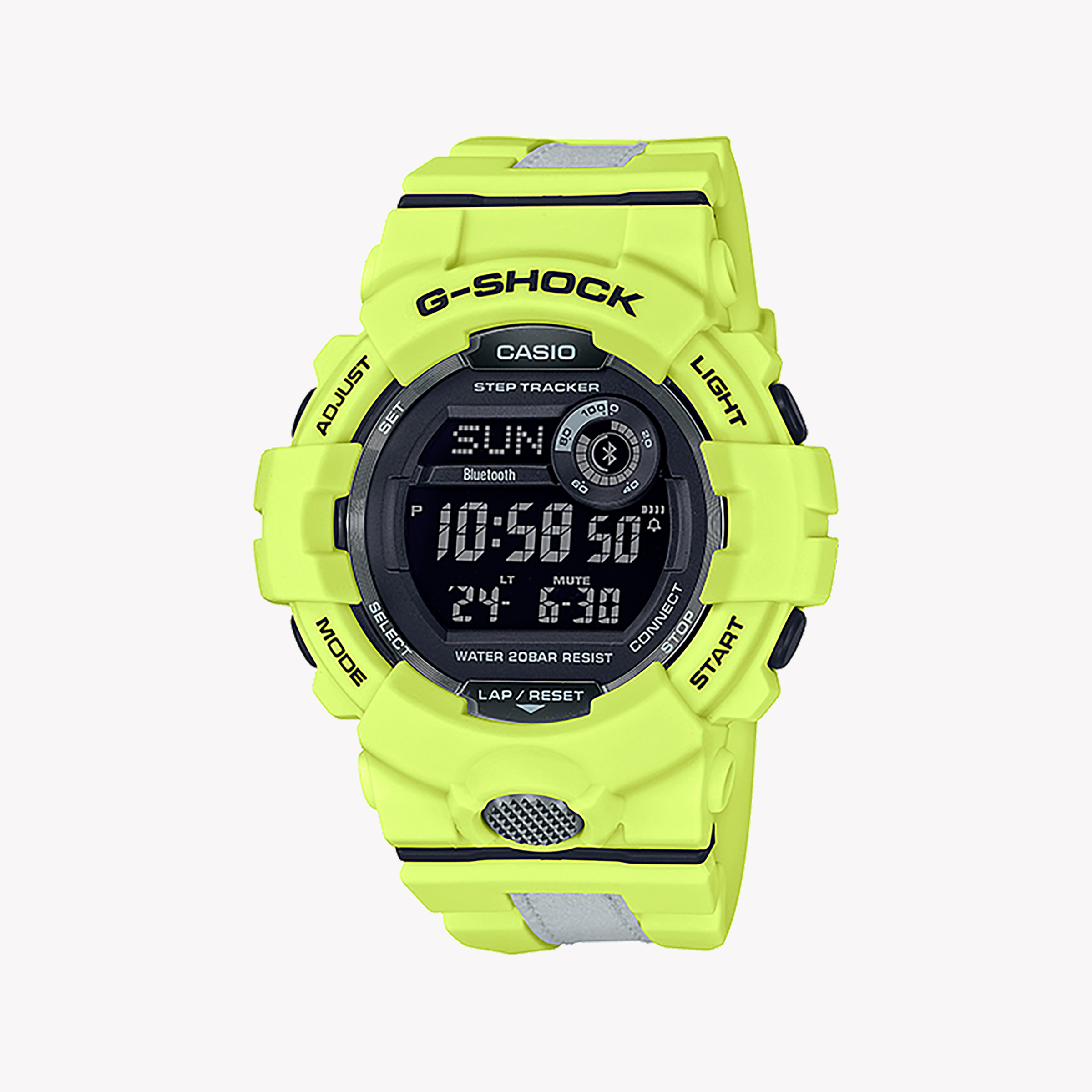 The GBD-800LU-9DR is designed for those who approach life with confidence and flair. This striking yellow digital timepiece is your essential accessory for any occasion, whether you're managing a busy day at work or hitting the gym.