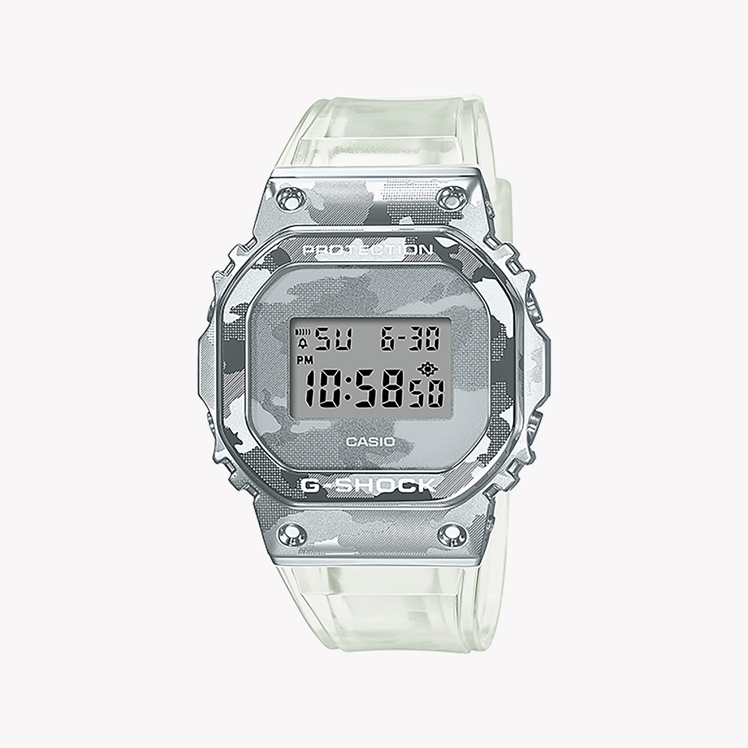 Experience modern precision and rugged style with the CASIO G-SHOCK GM-5600SCM-1ER. Designed for adventurous men, this striking silver and transparent timepiece is built to thrive in any environment.
