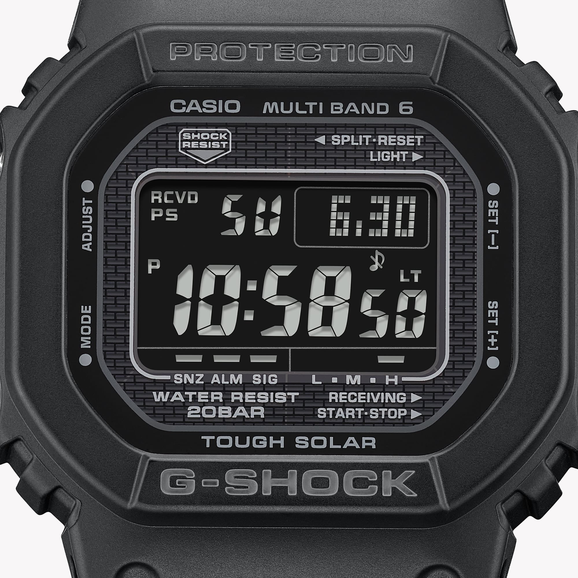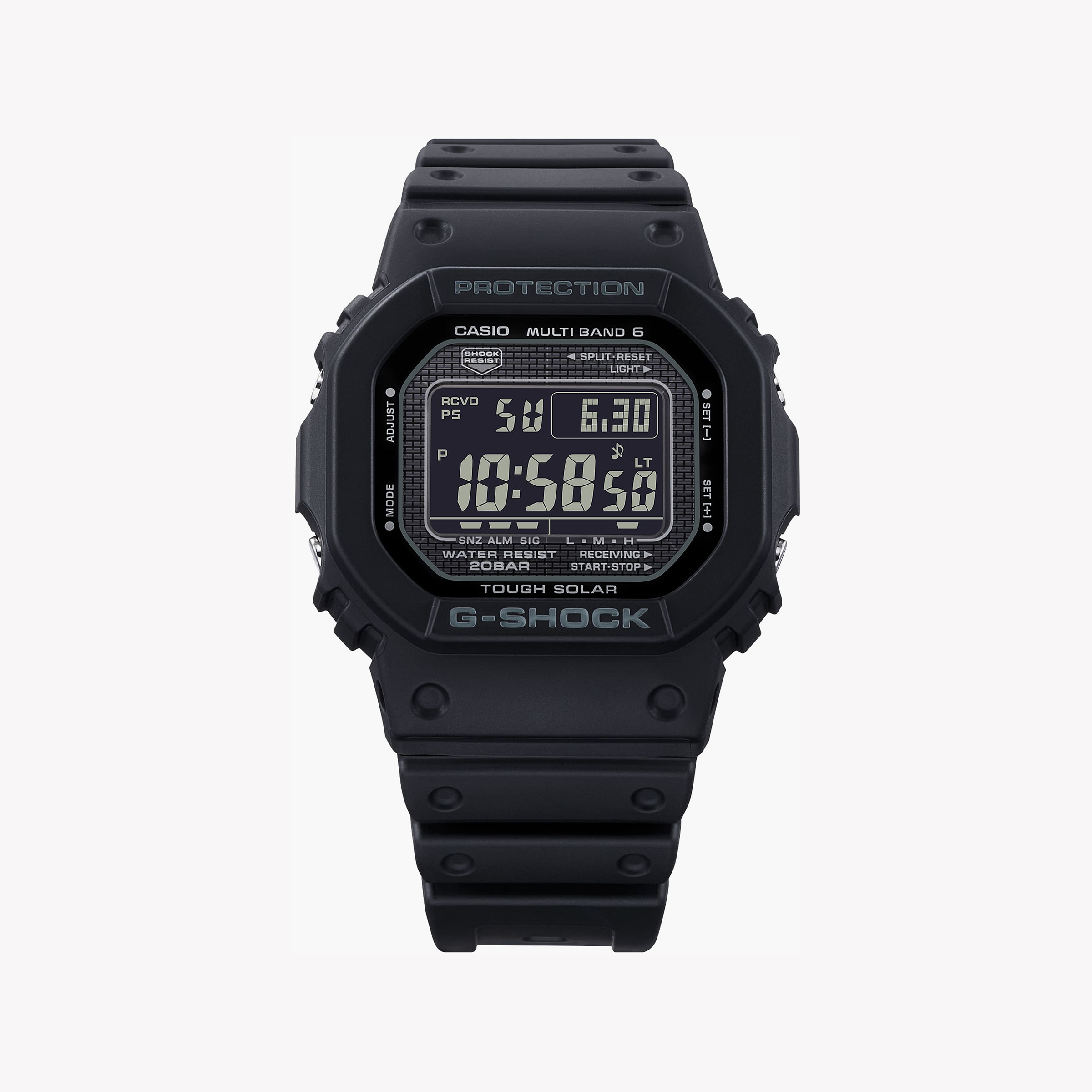 Experience bold elegance with the CASIO G-SHOCK GW-5000HS-1ER, a men's watch crafted from black stainless steel. Designed for those who value resilience, its 43mm case and 20 ATM water resistance boldly complement your adventurous spirit.