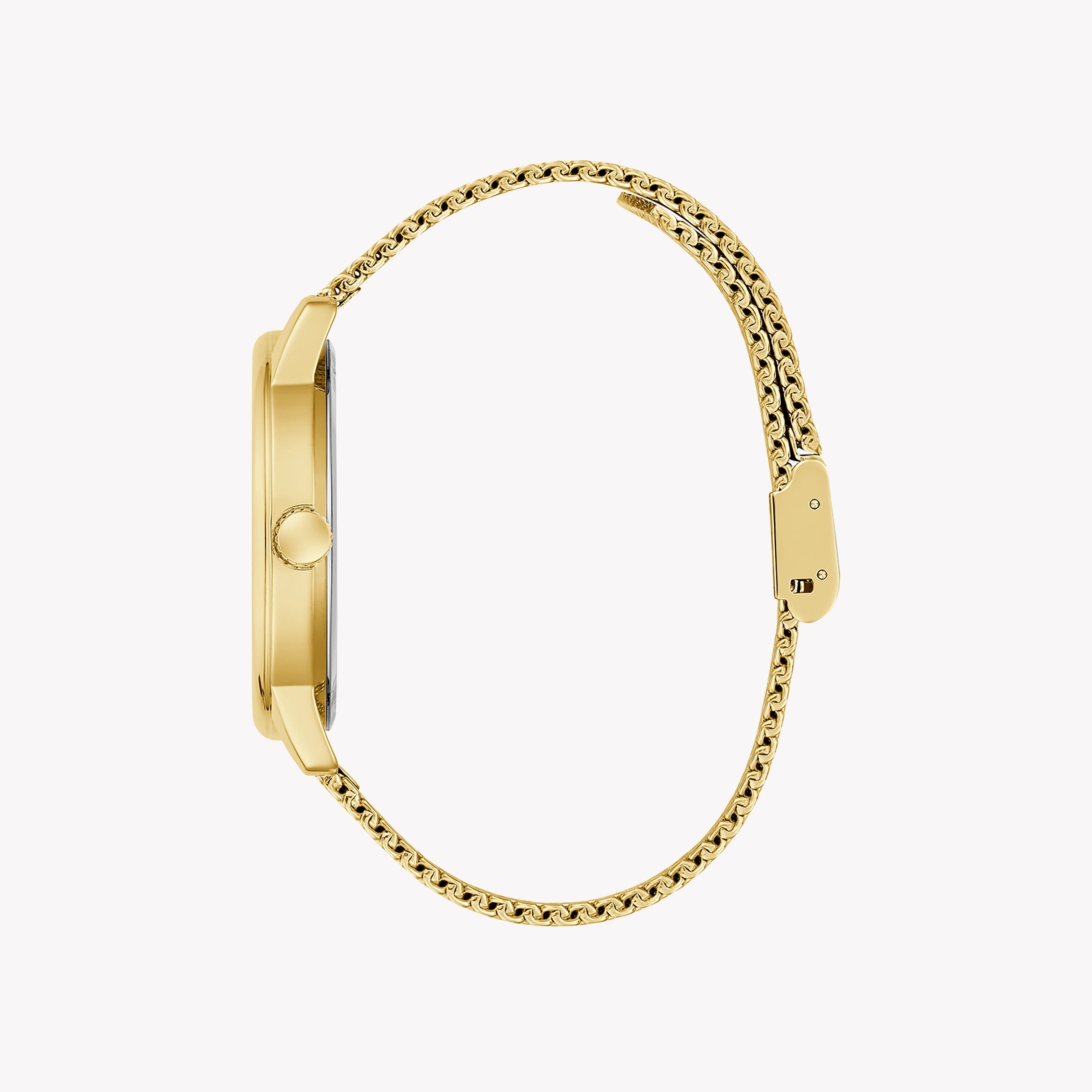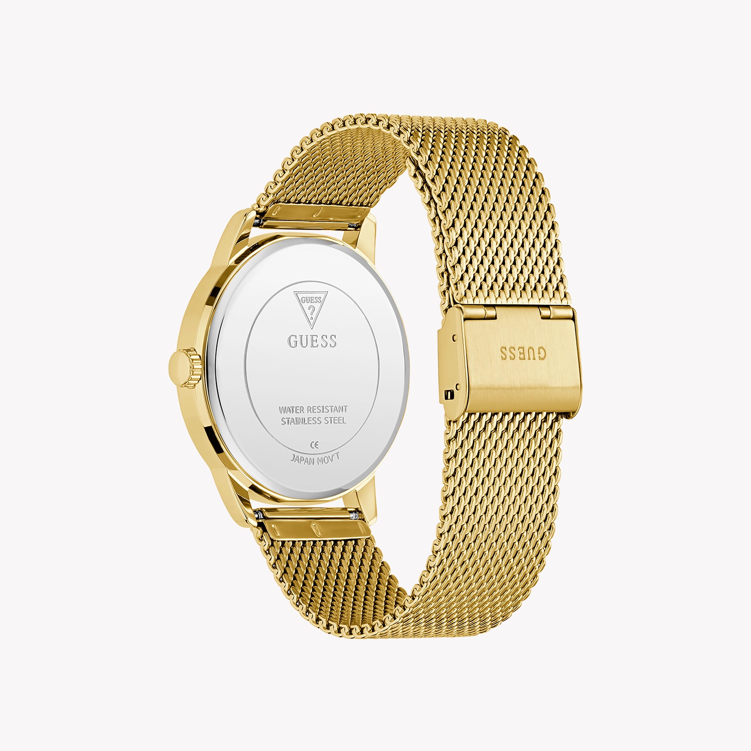 Introducing the GUESS GW0974G2 Men's Gold Watch – a stunning blend of elegance and functionality. Featuring a luxurious gold stainless steel case and band, paired with a striking black dial, this sophisticated timepiece is perfect for the modern man. With 3 ATM water resistance and reliable quartz movement, this watch keeps you on time and stylish for every occasion. Embrace refined craftsmanship and make your mark with this exquisite accessory!