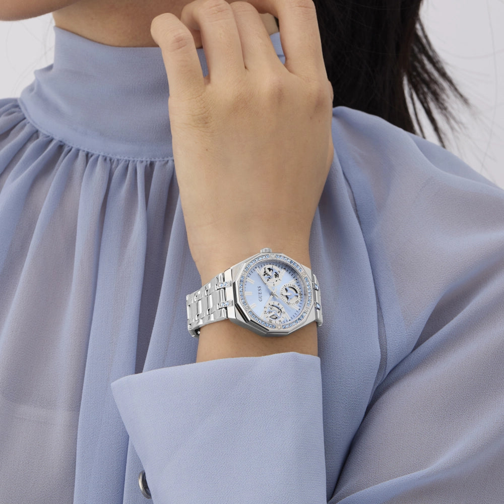 Make the GUESS Women's GW1009L1 Silver Watch your go-to accessory for any occasion. Experience the perfect blend of style, reliability, and functionality—order yours today!