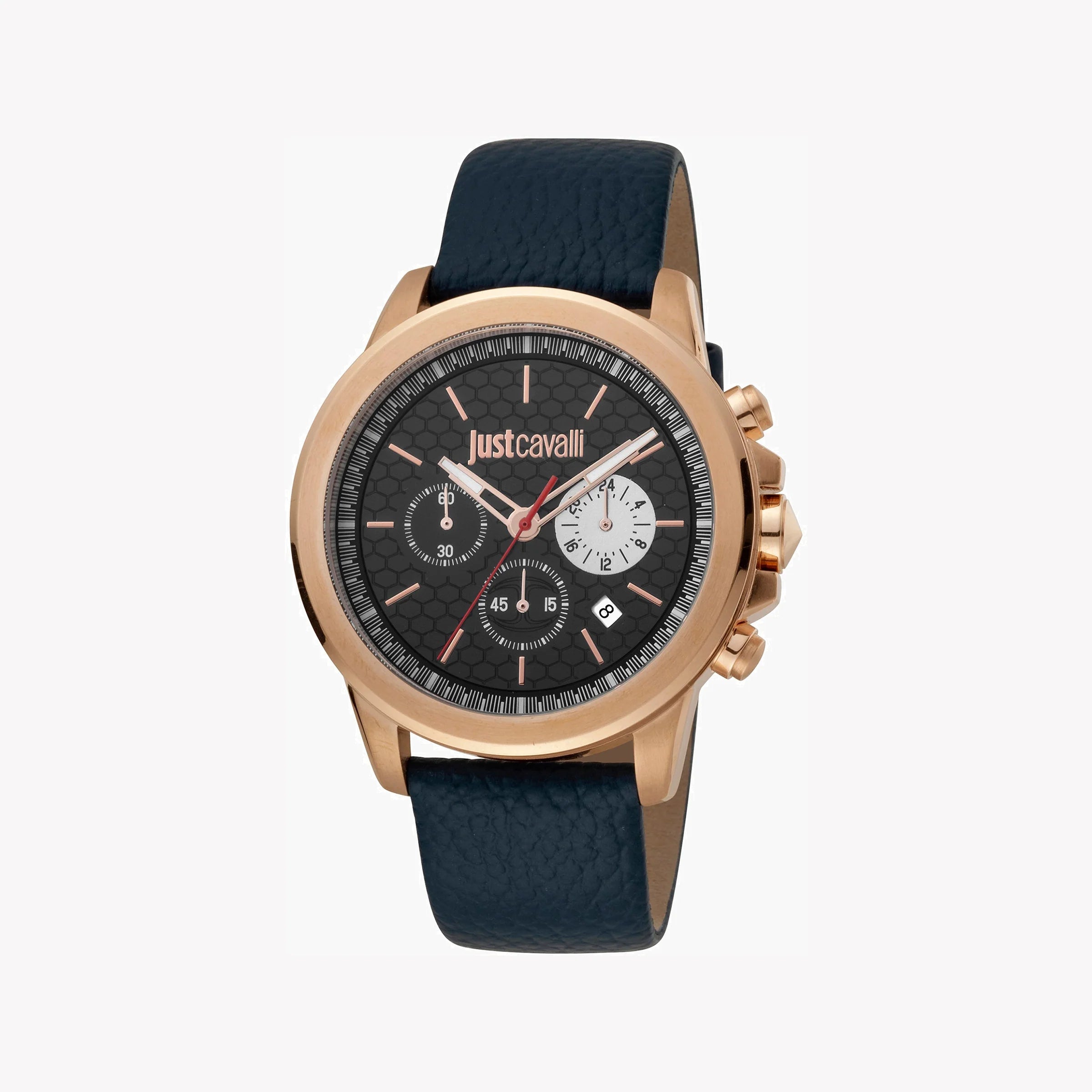 Timeless, sophisticated, elegant. This Just Cavalli Men's Watch has it all. From the Blue Leather band to the Stainless Steel Round Rose Gold case of 44 mm diameter and of course the elegant Black dial, this watch is the perfect representation of the ultimate sophistication.