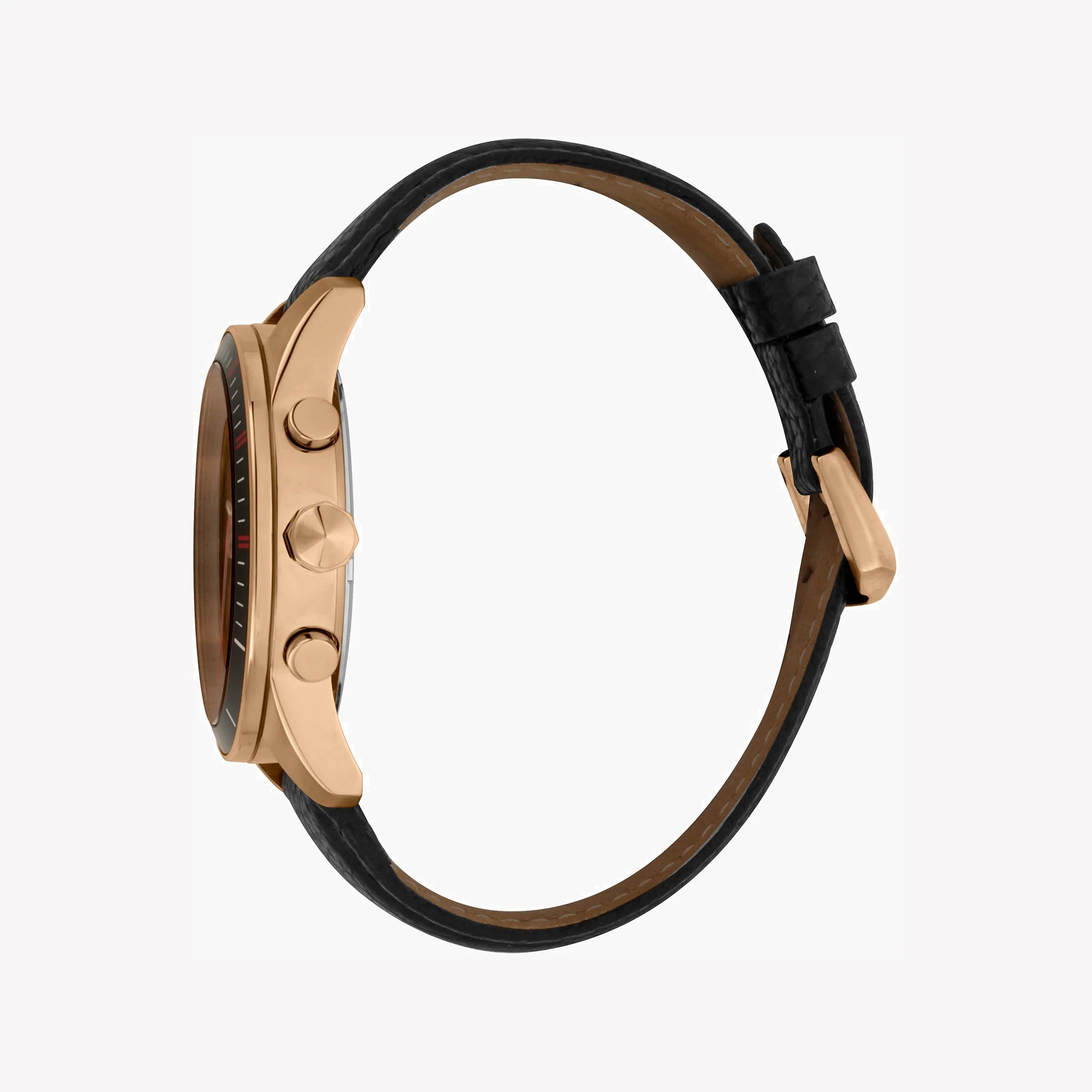 Timeless, sophisticated, elegant. This Just Cavalli Men's Watch has it all. From the Black Leather band to the Stainless Steel Round Rose Gold case of 44 mm diameter and of course the elegant Black dial, this watch is the perfect representation of the ultimate sophistication.