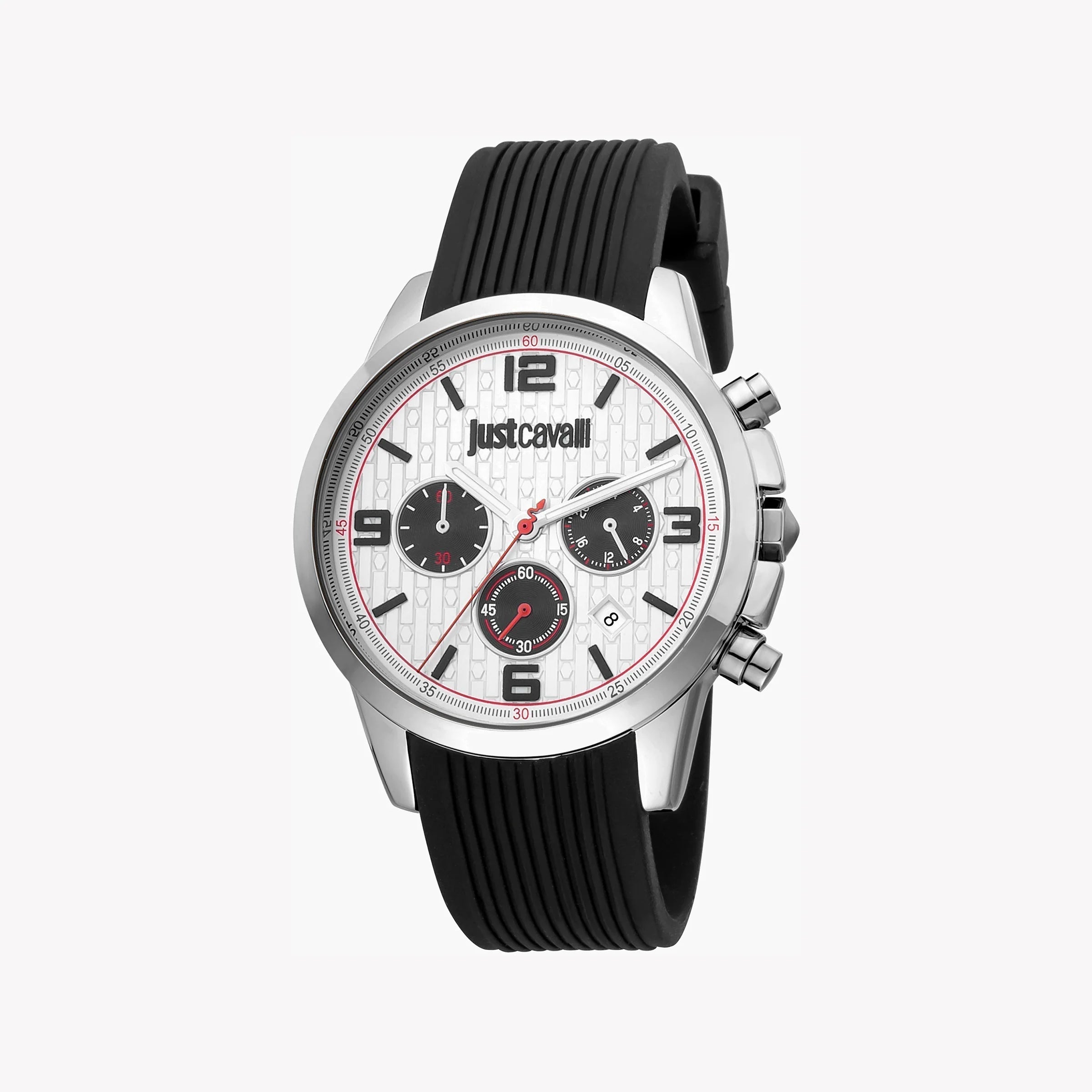 Just Cavalli Men's Black Silicone Watch, Silver Dial | Jc1g175p0015