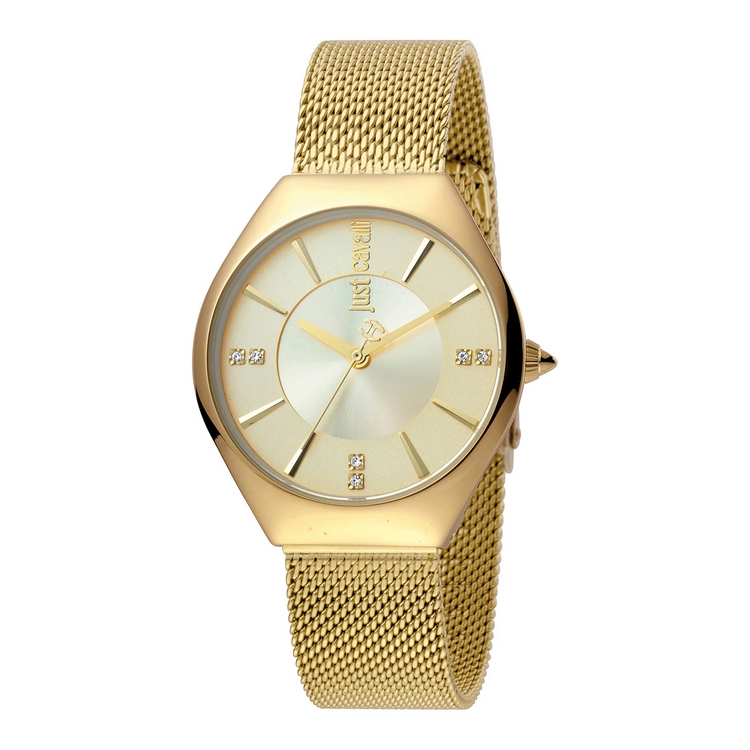 Timeless, sophisticated, elegant. This Just Cavalli Women's Watch has it all. From the Gold Stainless Steel band to the Stainless Steel Round Gold case of 34 mm diameter and of course the elegant Champagne dial, this watch is the perfect representation of the ultimate sophistication.