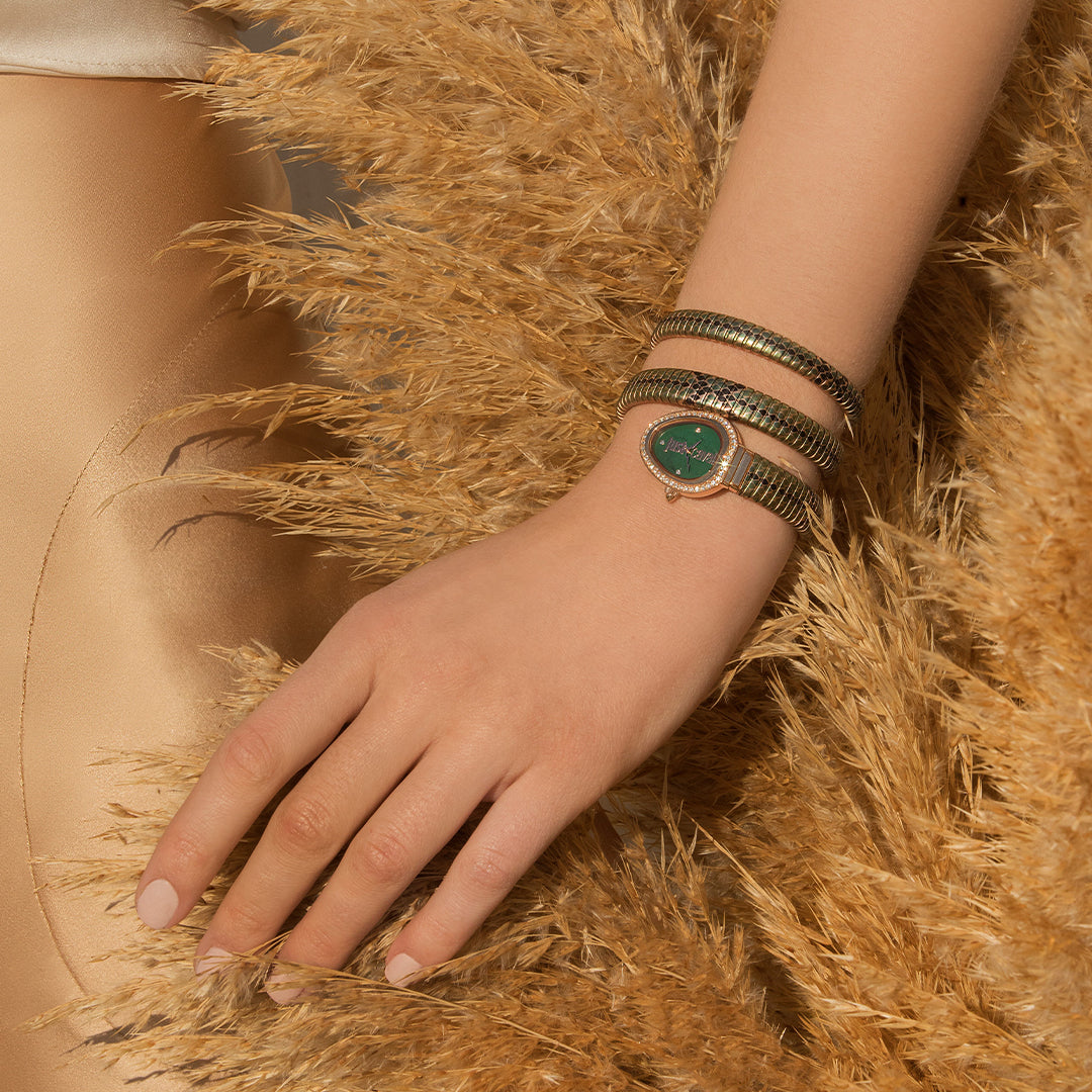 Timeless, sophisticated, elegant. This Just Cavalli Women's Watch has it all. From the Rose Gold Stainless Steel band to the Stainless Steel Asymmetrical Rose Gold case of 23 X 29.50 mm diameter and of course the elegant Green dial, this watch is the perfect representation of the ultimate sophistication.