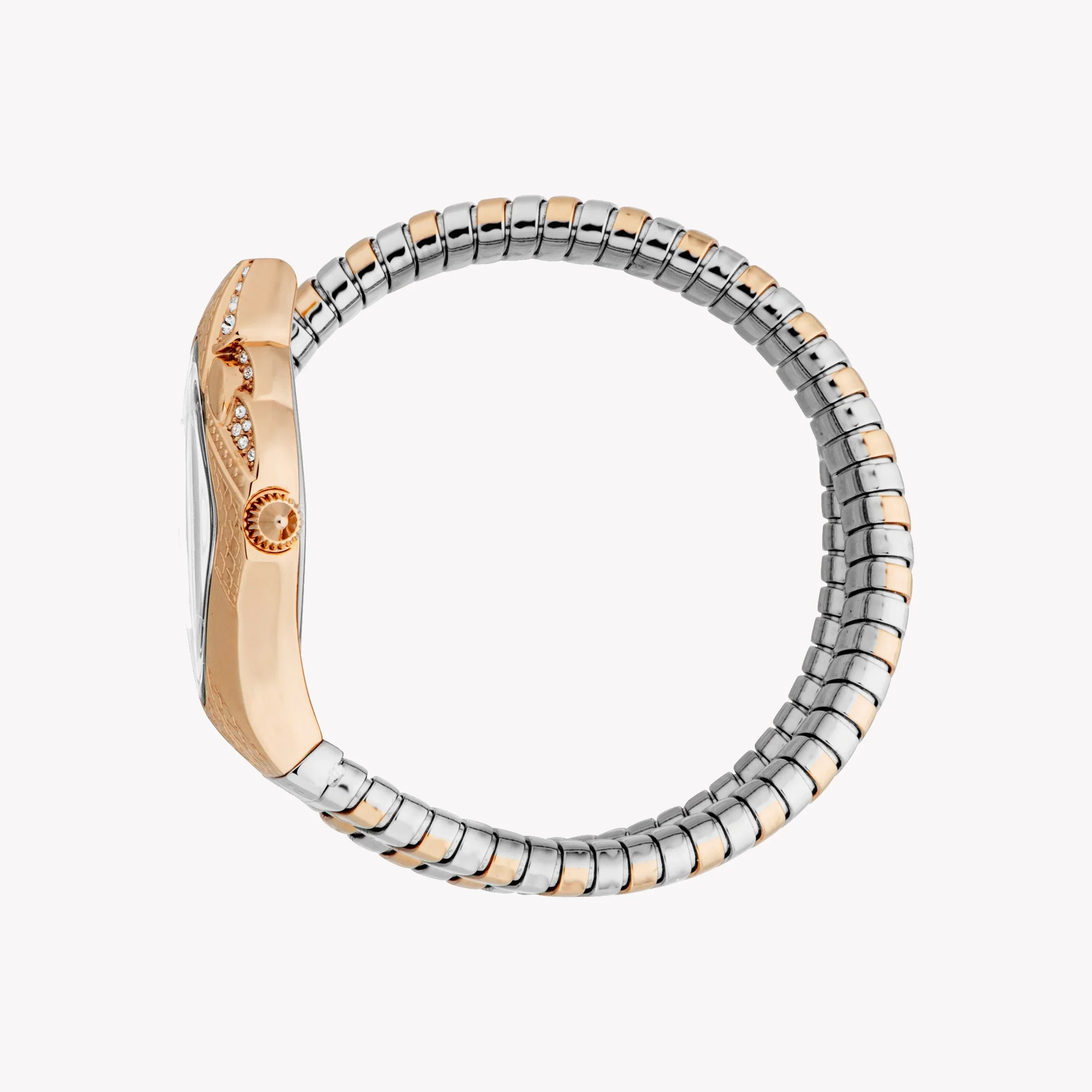 Discover the allure of the Just Cavalli Rose Gold Stainless Steel Women's Watch, a remarkable timepiece that speaks to the modern woman's desire for style and flair. With its distinct asymmetrical case and luxurious rose gold finish, this watch is designed to stand out in any setting, from casual outings to more sophisticated soirées.