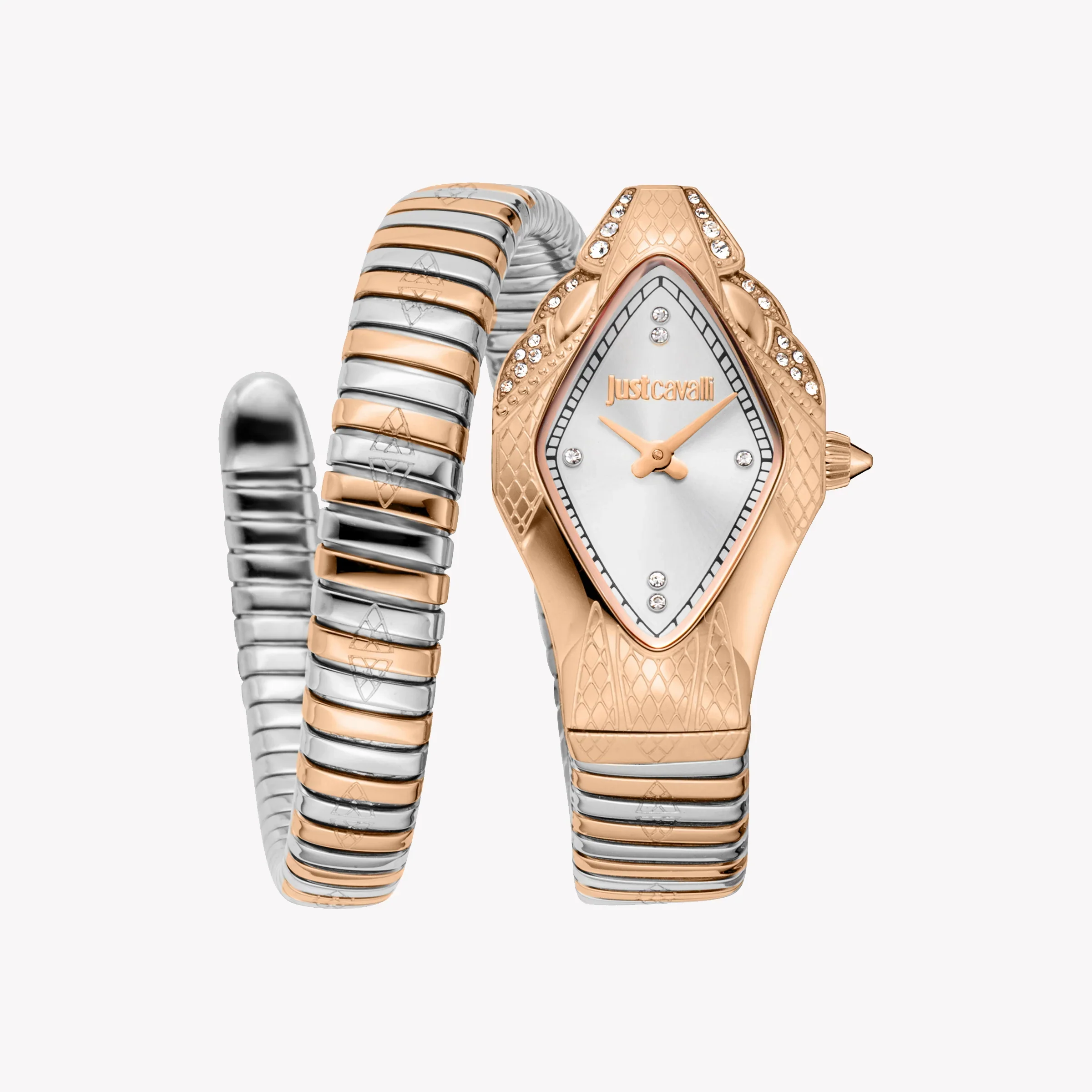 The Just Cavalli Rose Gold Stainless Steel Women's Watch is more than just a timekeeping device; it’s an extension of your personality. Whether you’re dressing up for an evening out or adding flair to your everyday ensembles, this watch is an essential accessory that showcases your distinctive style.