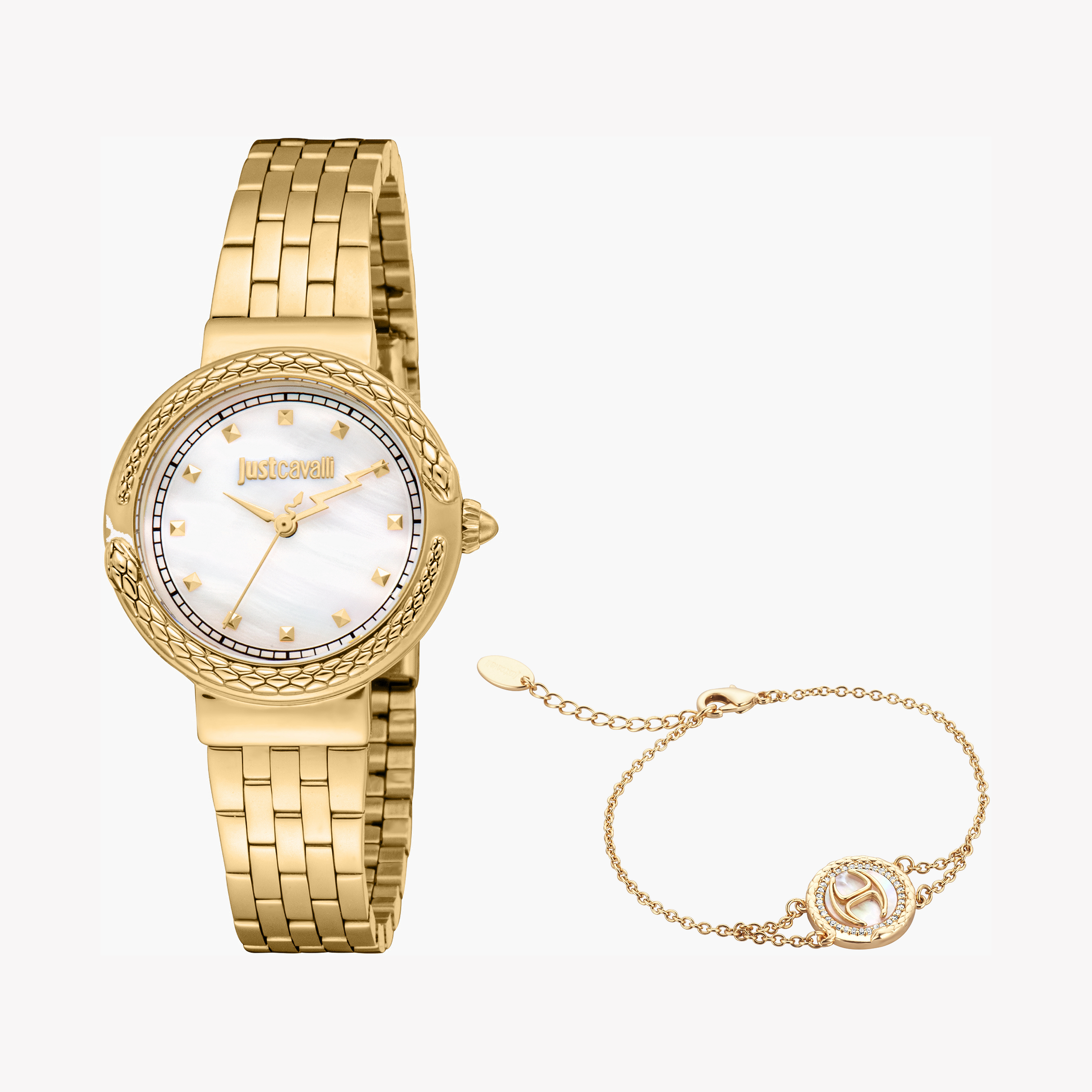Just Cavalli Women's Gold Watch, White Mother-Of-Pearl Dial | Jc1l311m0025
