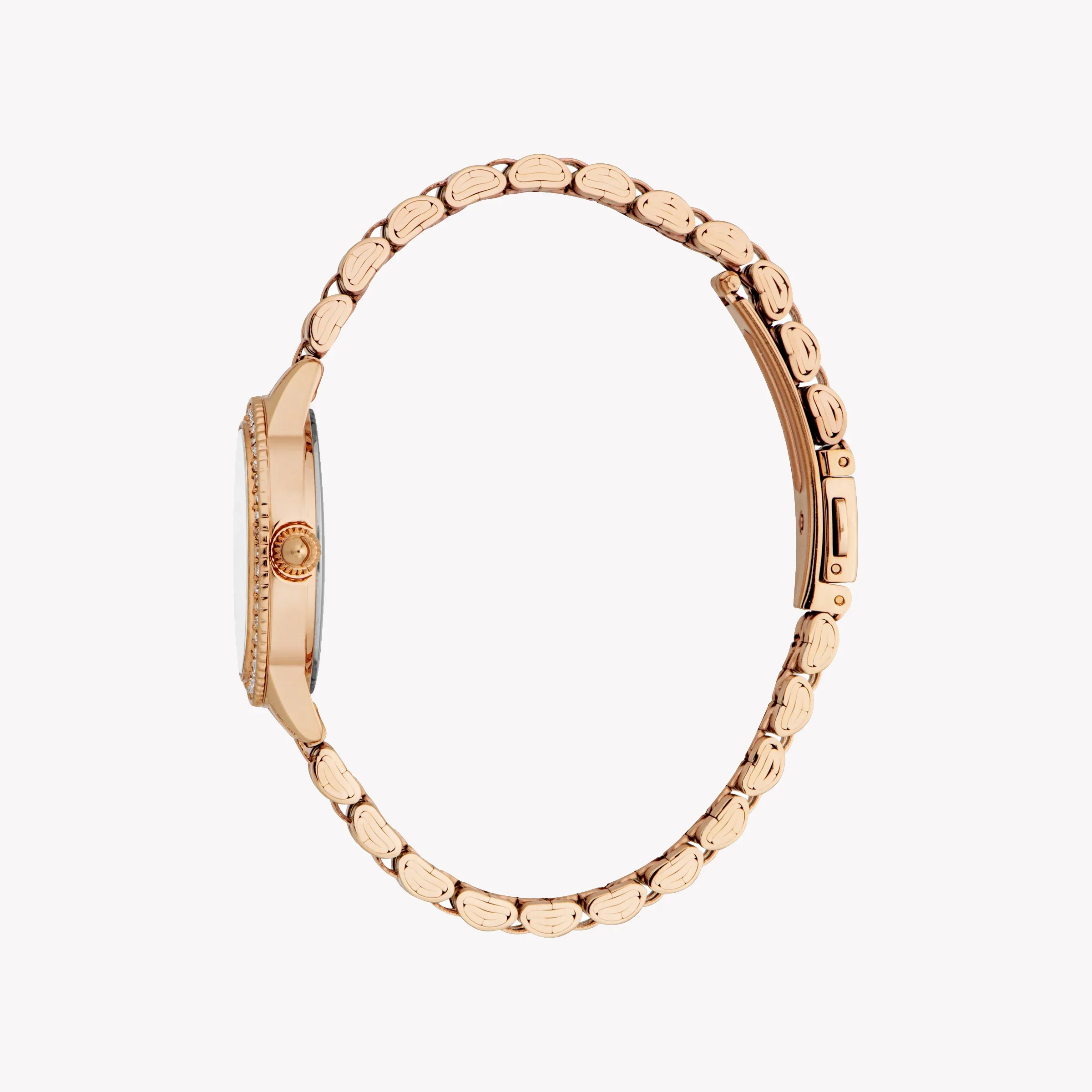 - Striking Aesthetic: The round 30mm case, finished in lustrous rose gold, offers a striking profile that captures attention, making it a must-have for fashion-forward individuals.
