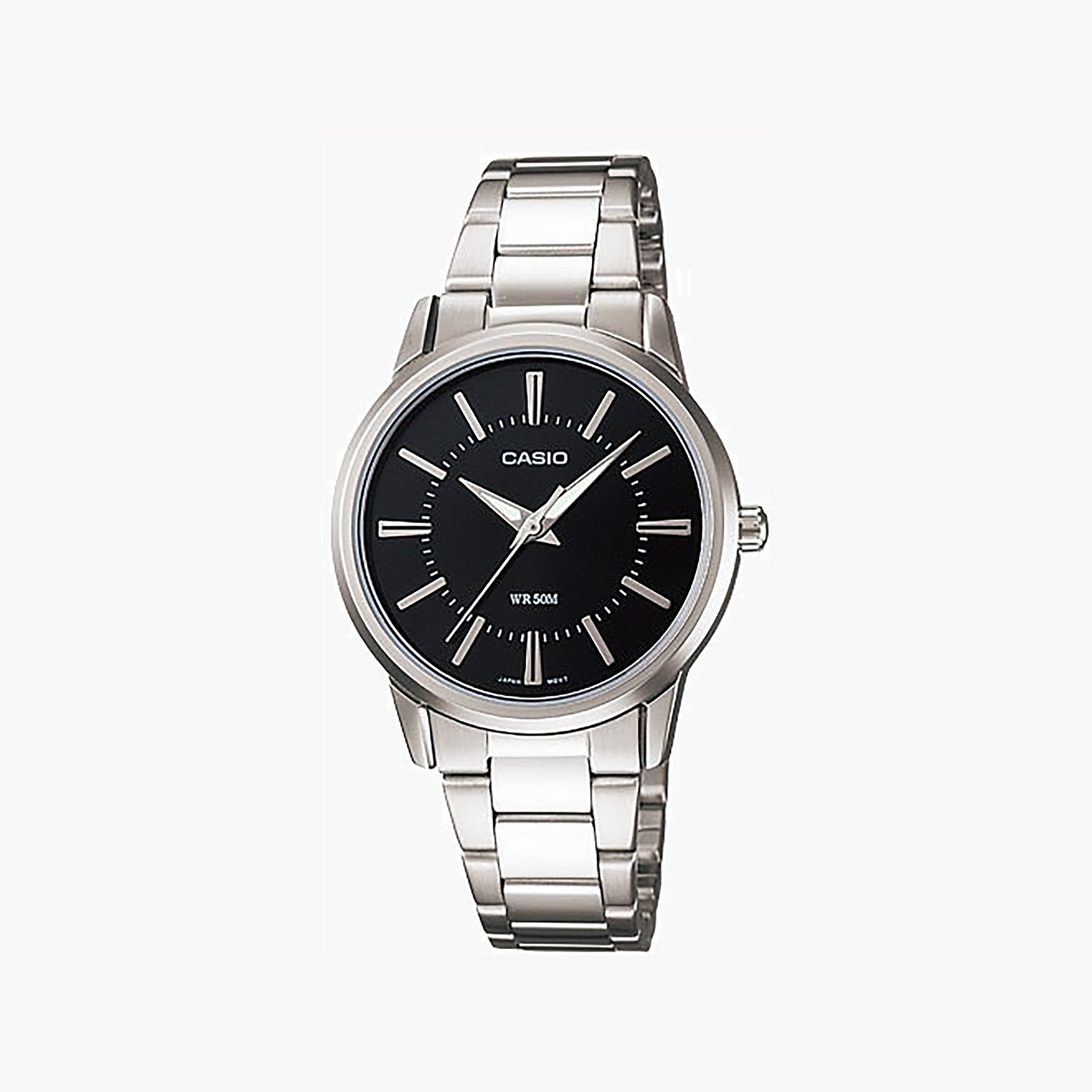 Casio Women's Stainless Steel Silver Watch, Black Dial | Ltp-1303d-1avdf