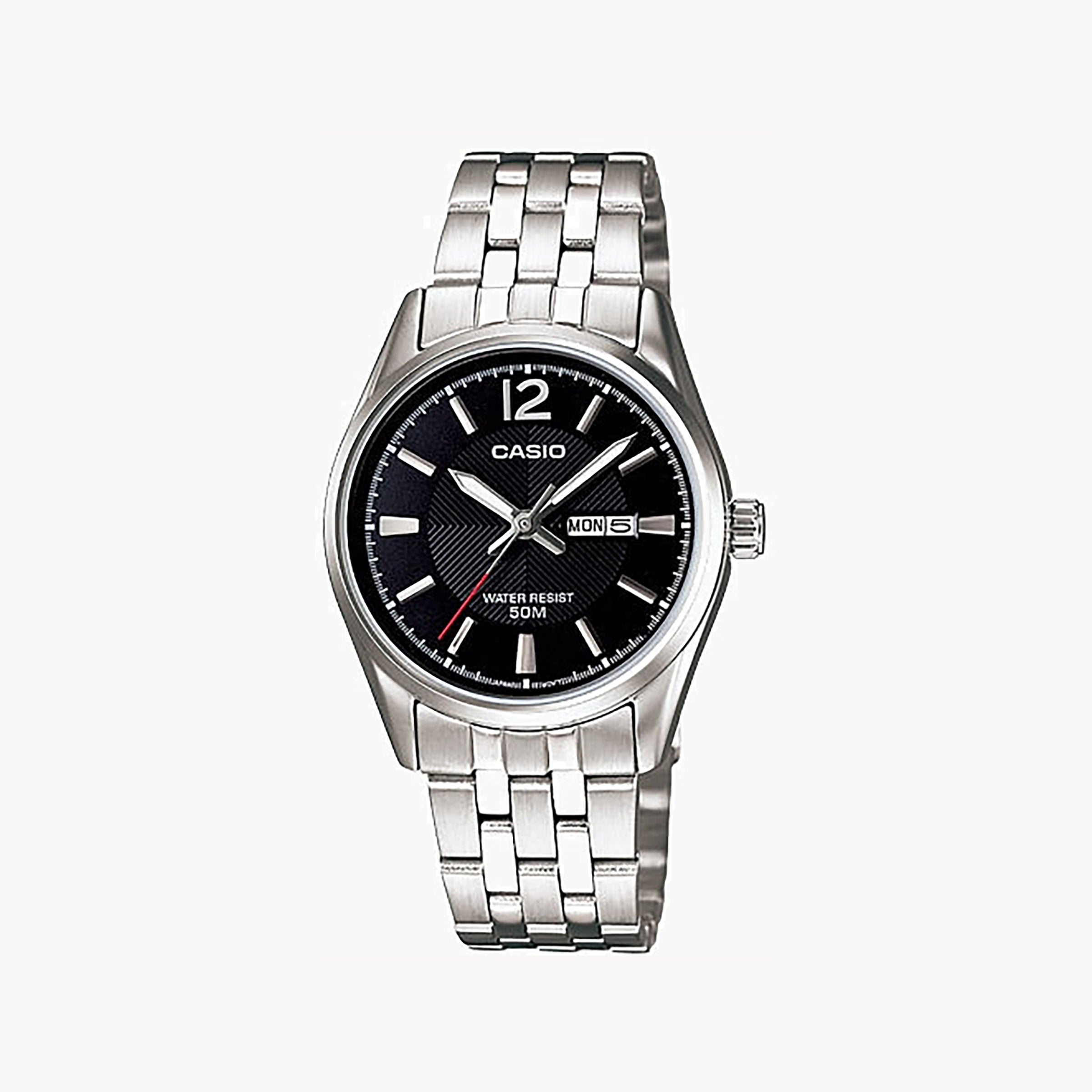 Casio Women's Silver Stainless Steel Watch, Black Dial | Ltp-1335d-1avdf