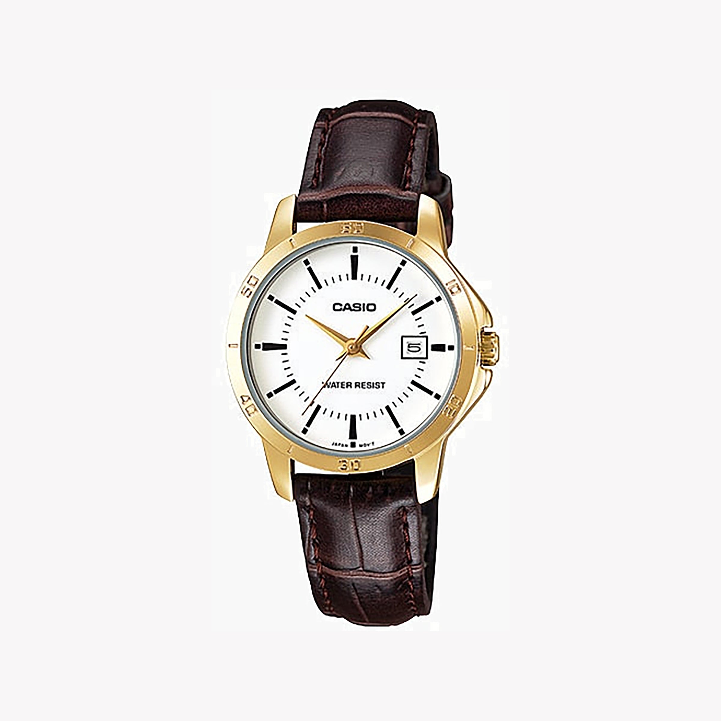 Casio Women's Gold Stainless Steel, Brown Leather | Ltp-V004gl-7audf