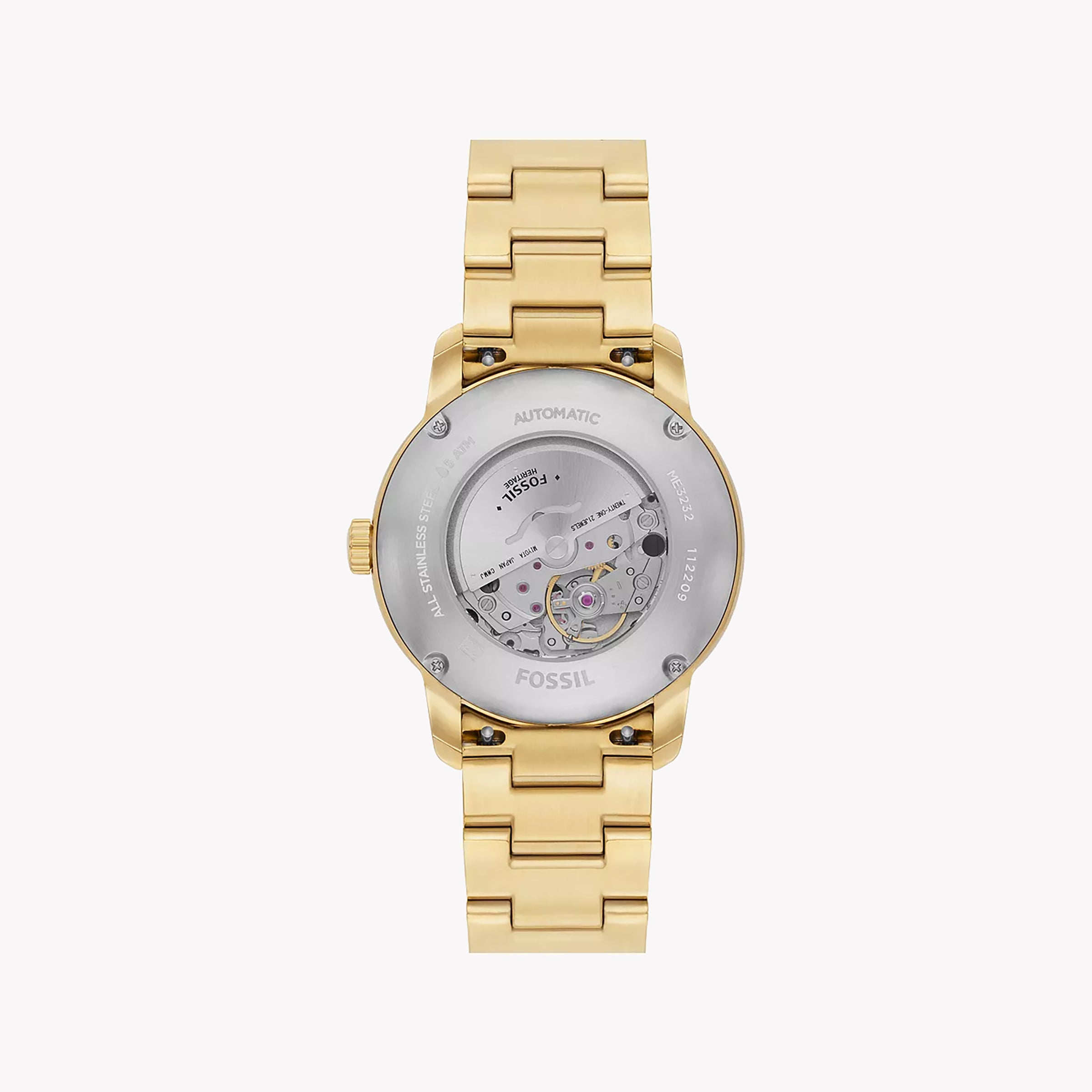 - Timeless Elegance: Featuring a commanding 43 mm stainless steel IP gold case, the Fossil ME3232 exudes luxury. Its sleek design and eye-catching gold color make it a perfect companion for any ensemble.