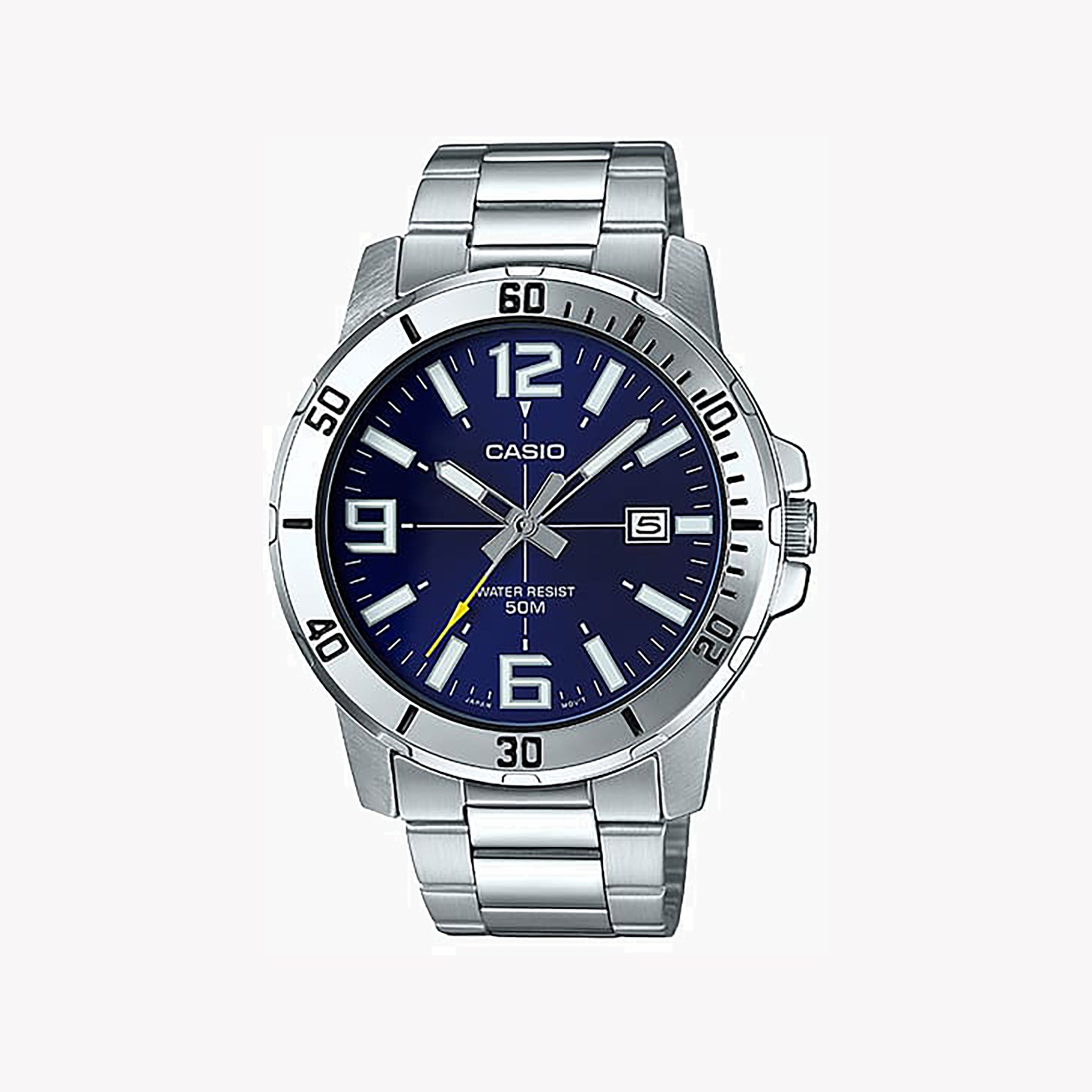 Casio Men's Silver Watch, Blue Dial | Mtp-Vd01d-2bv