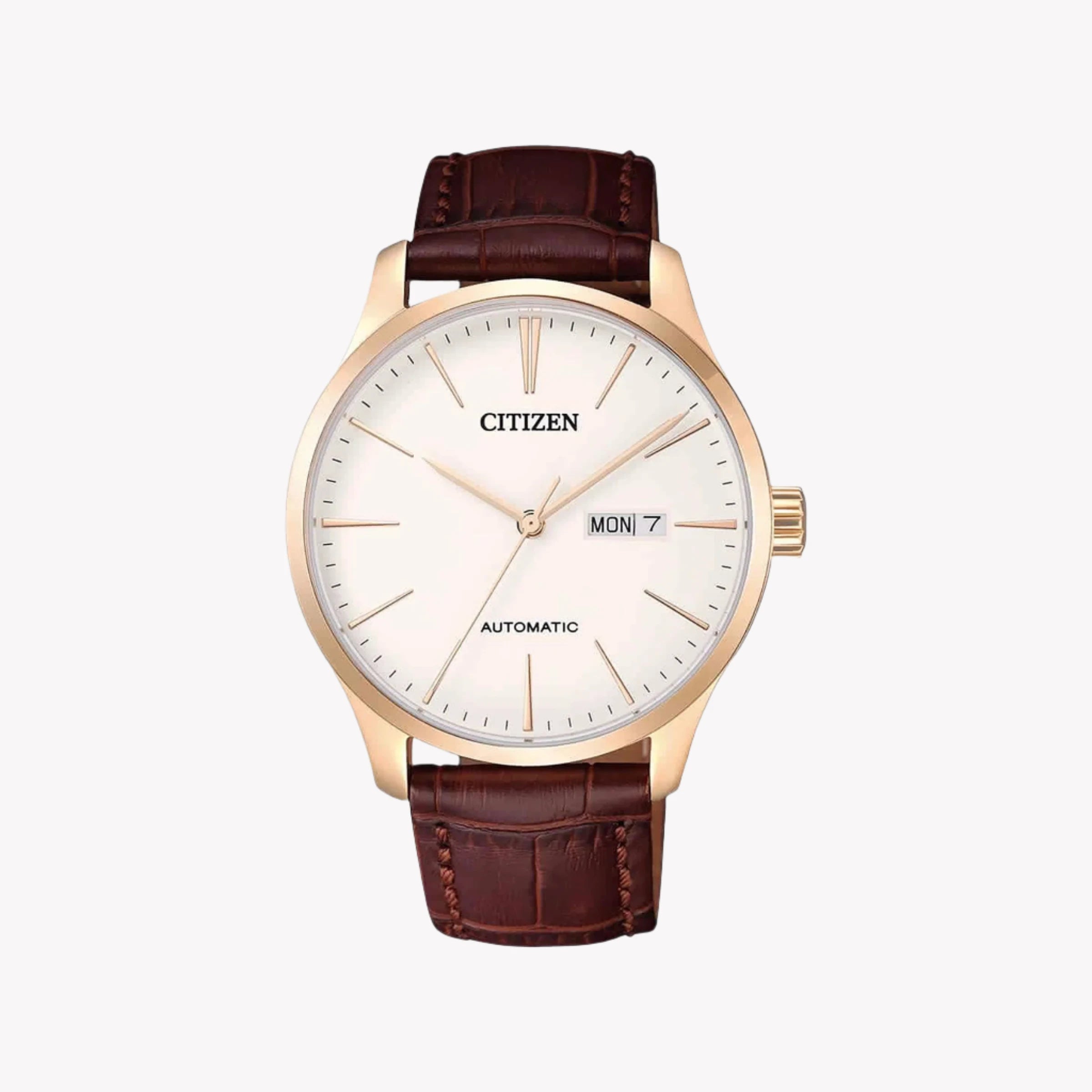 Citizen Nh8353-18a Timepiece - Elegant Rose Gold Men's Watch With Leather Band & Day/Date Display