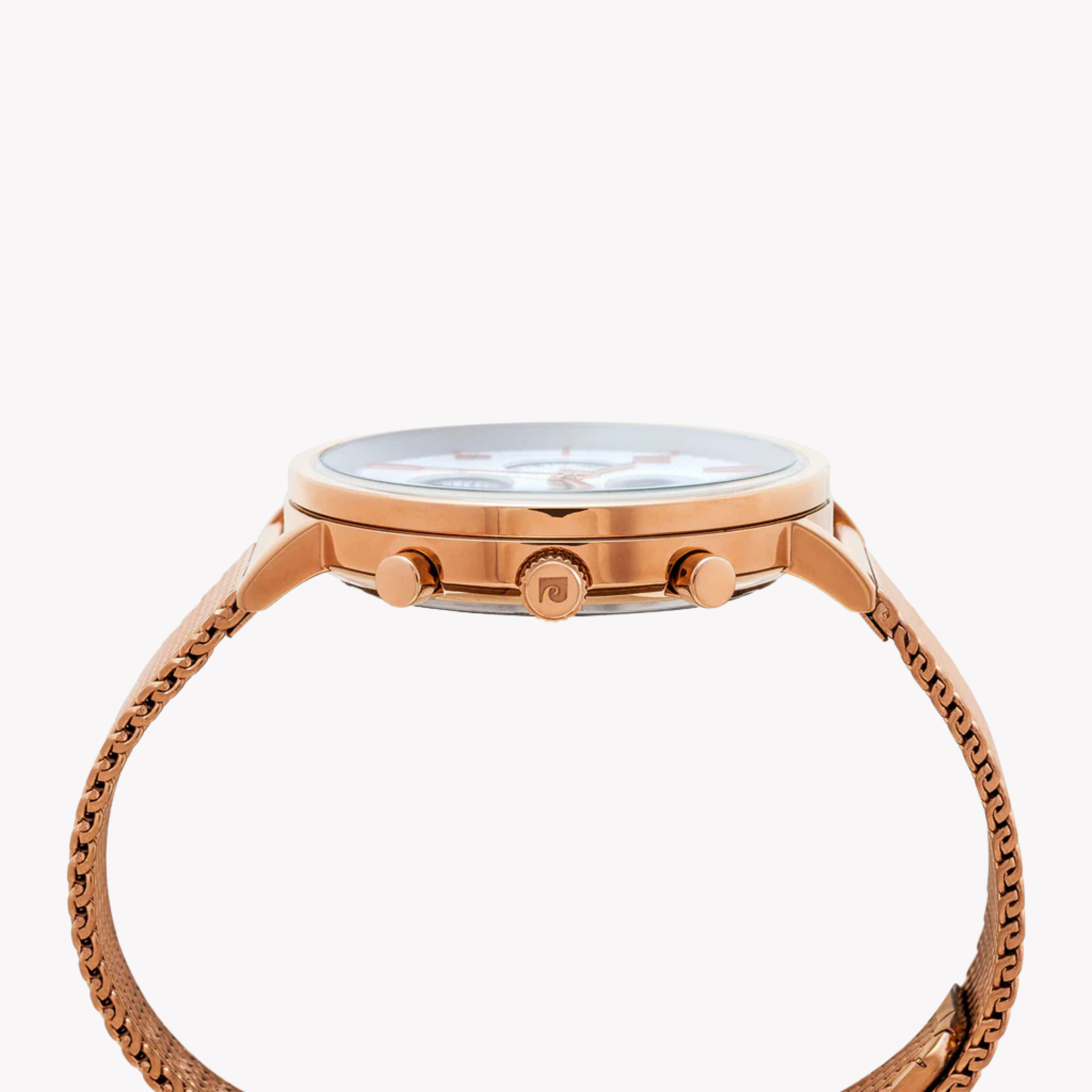 A stylish and luxurious-looking watch, the Pierre Cardin watch with a Stainless Steel Round Rose Gold case features a Rose Gold Stainless Steel Band and a White dial. It has a case diameter of 42 mm it will be a great addition to your outfit