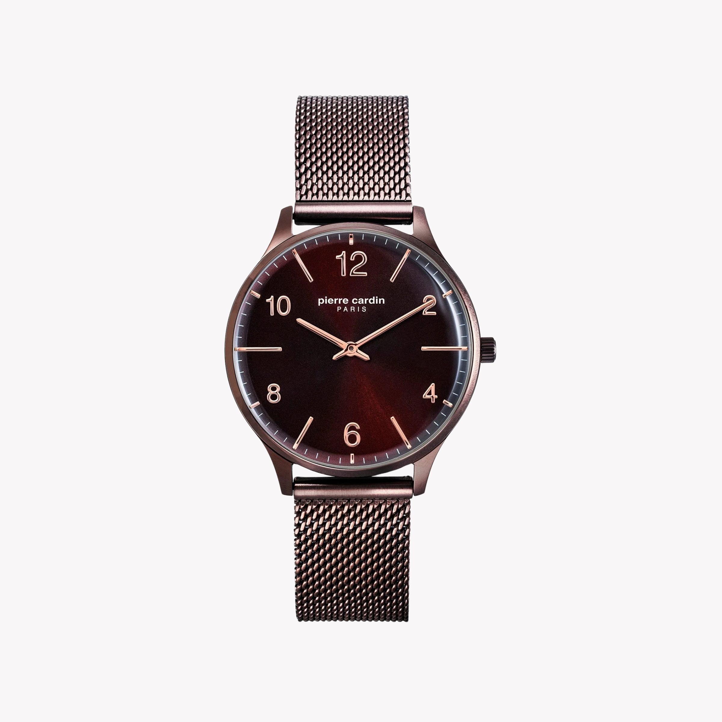 A stylish and luxurious-looking watch, the Pierre Cardin watch with a Stainless Steel Round Copper case features a Copper Stainless Steel Band and a Copper dial. It has a case diameter of 34 mm it will be a great addition to your outfit
