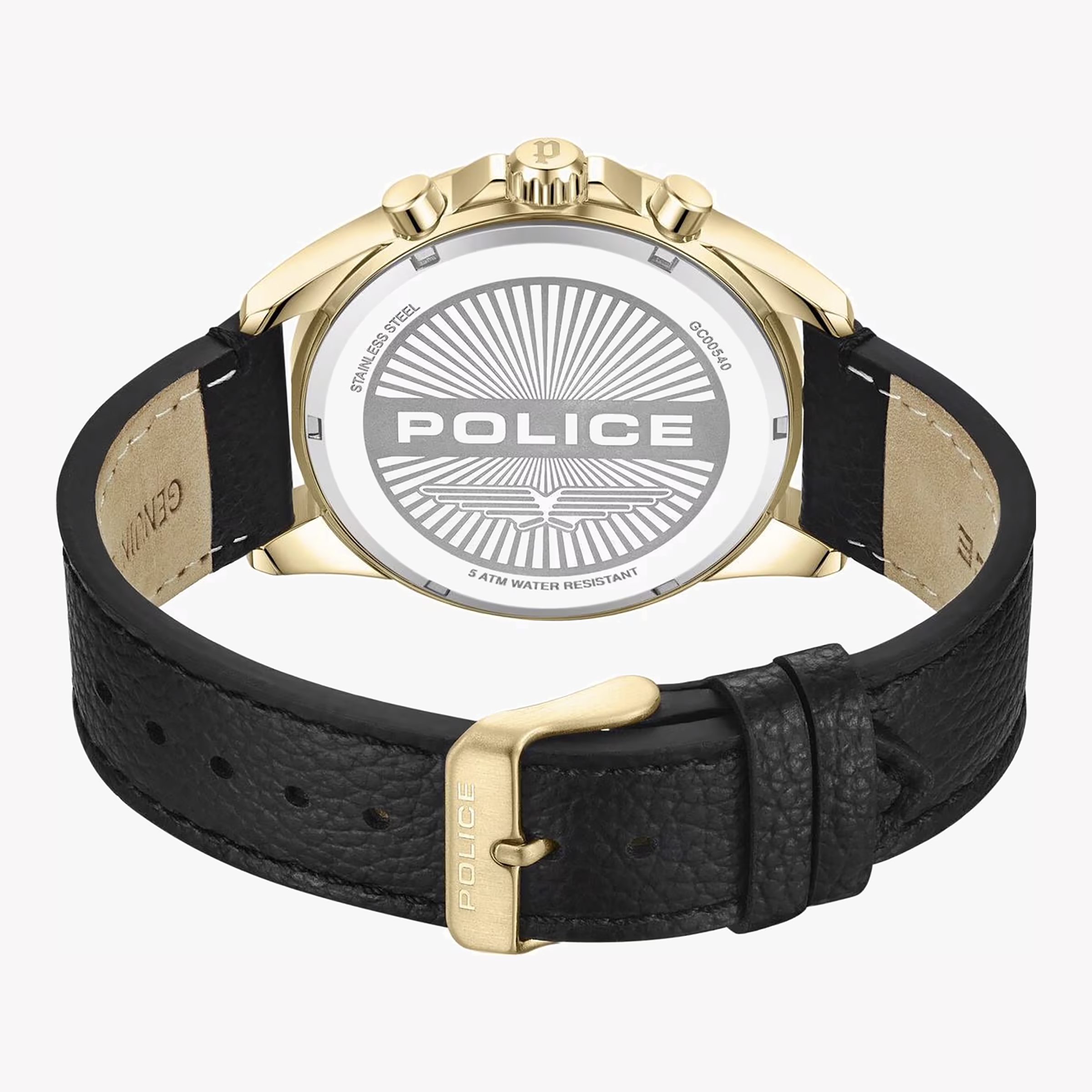 Police Men's Gold Watch, Black Leather Band | Pewgc0054001