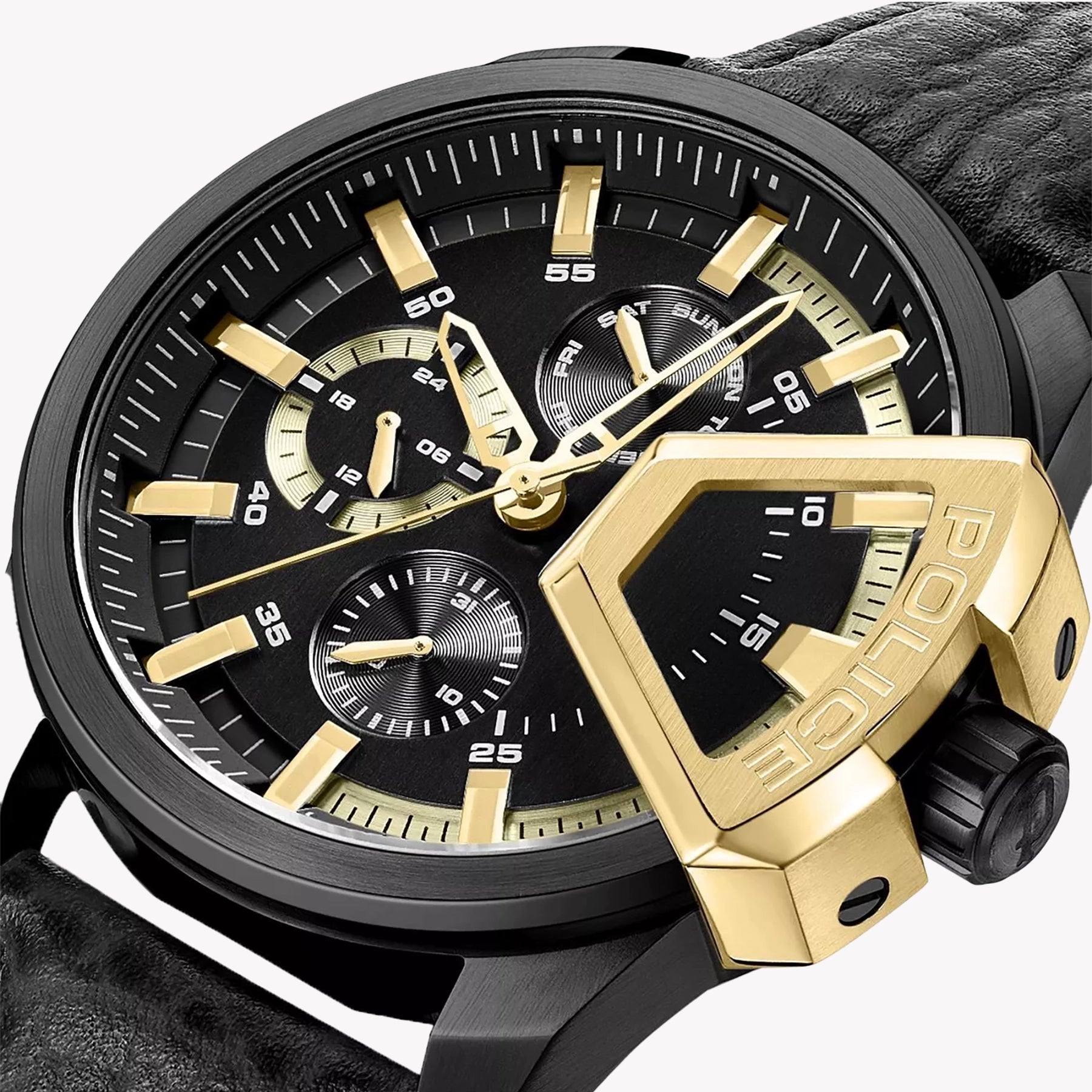 Police Men's Black & Gold Leather Watch | Pewjf0005704
