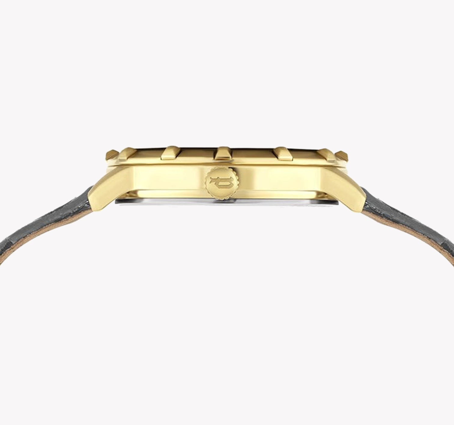 - Striking Design: Featuring a sleek 36 mm stainless steel case with a radiant gold color, this watch exudes elegance and luxury, while offering a contemporary twist with its chic gray leather strap.