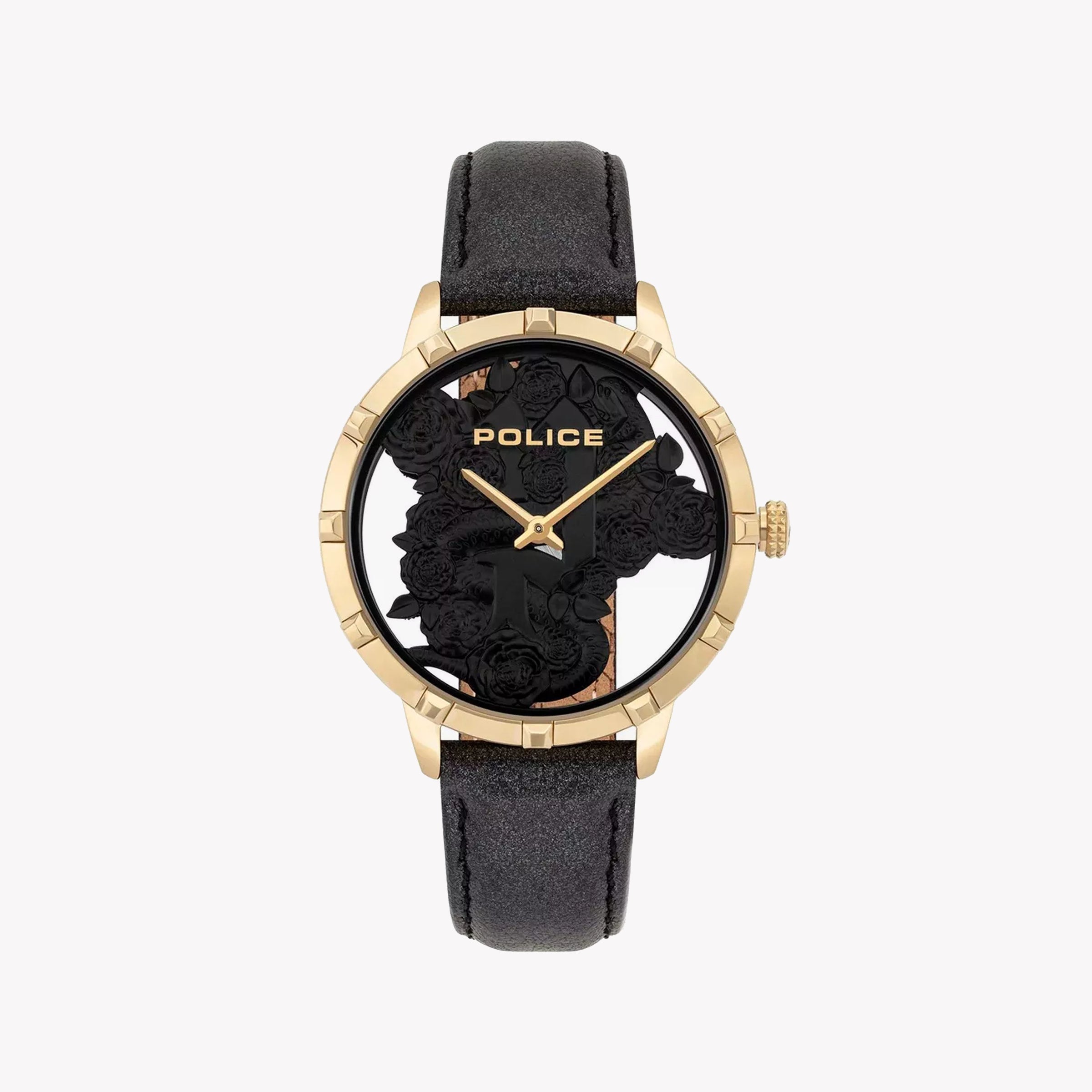 Police Women's Gold Stainless Steel, Black Leather | Pl-16041msg_02