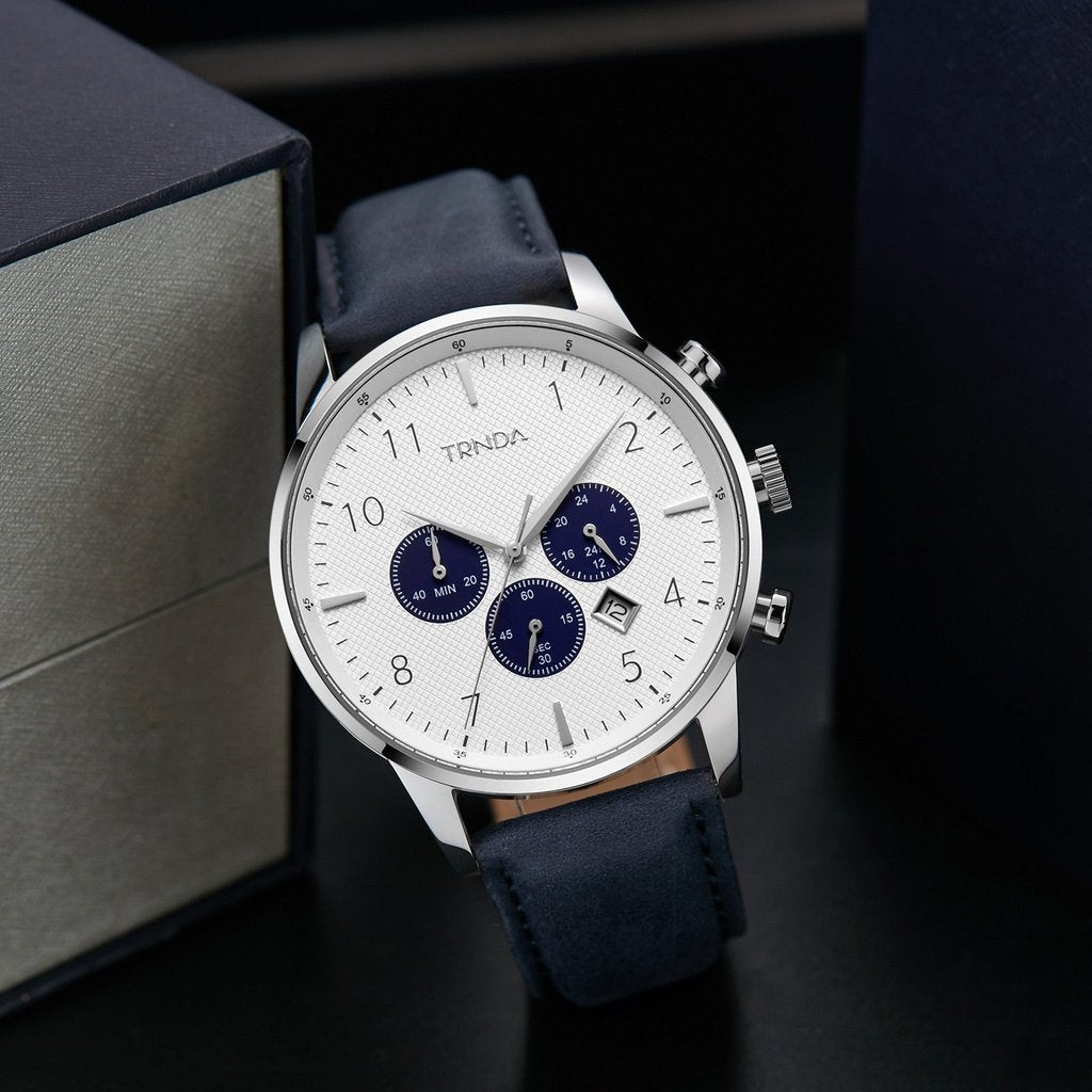Trnda Men's Stainless Steel Watch, Blue Leather Band | Trn43mm