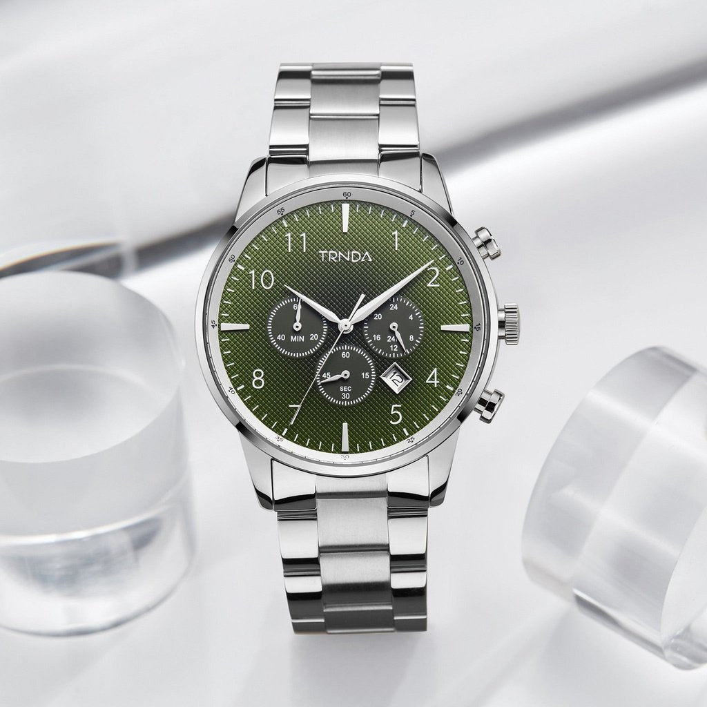 Trnda Men's Stainless Steel Watch, Gradient Green Dial | Trn43mm