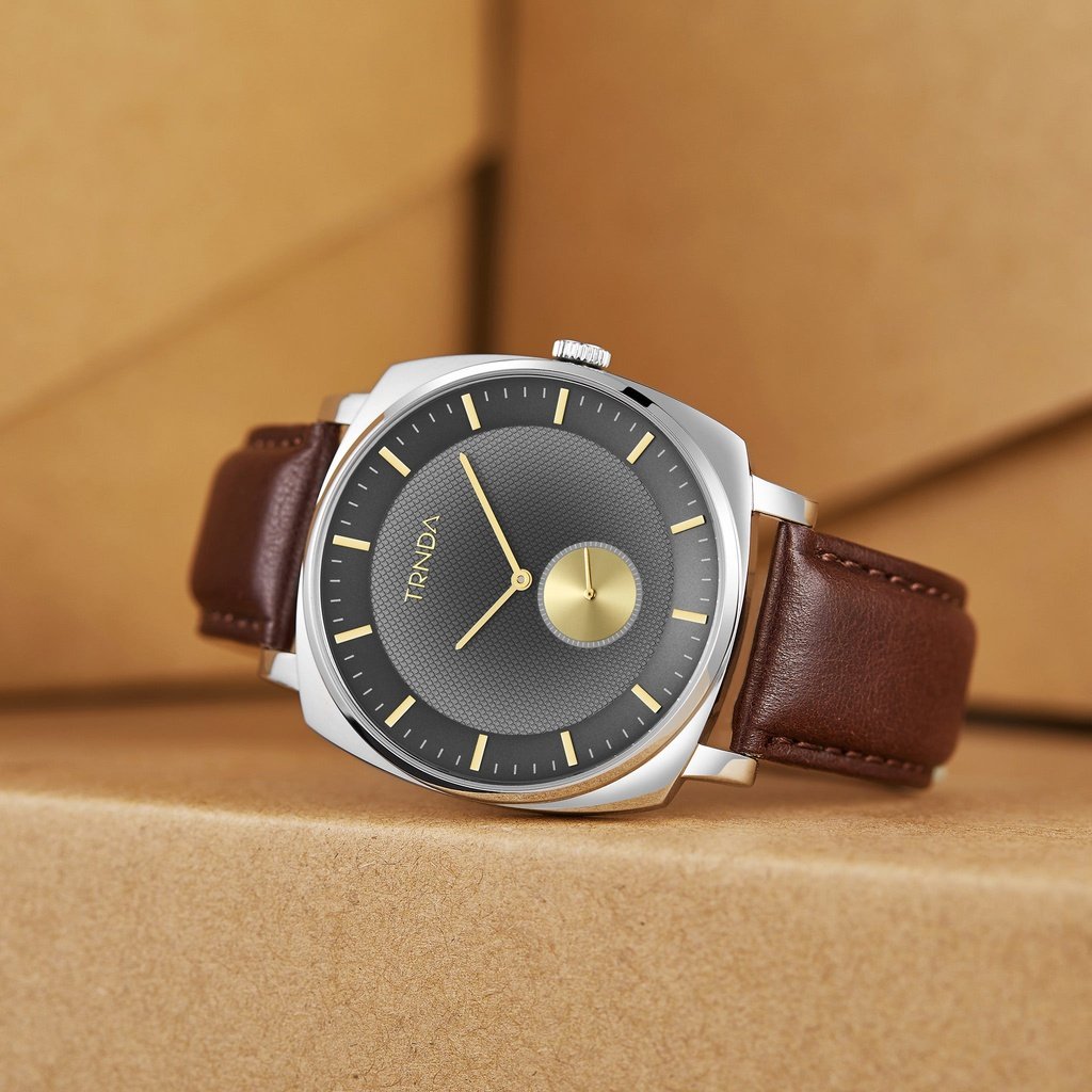 Trnda Men's Stainless Steel Watch, Brown Leather Band | Trn-Ss45-Br