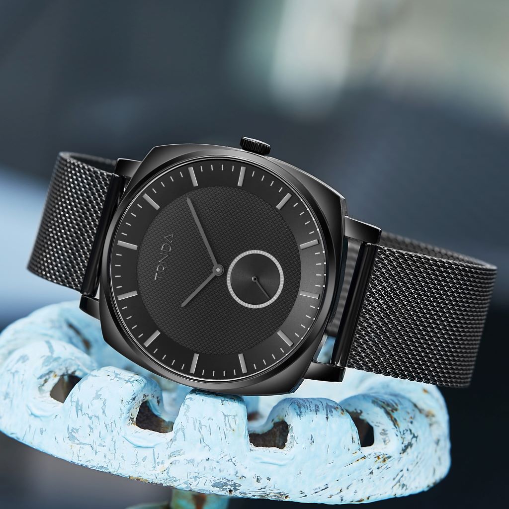 Trnda Men's Black Stainless Steel Watch, Square Case | Trnda45mm