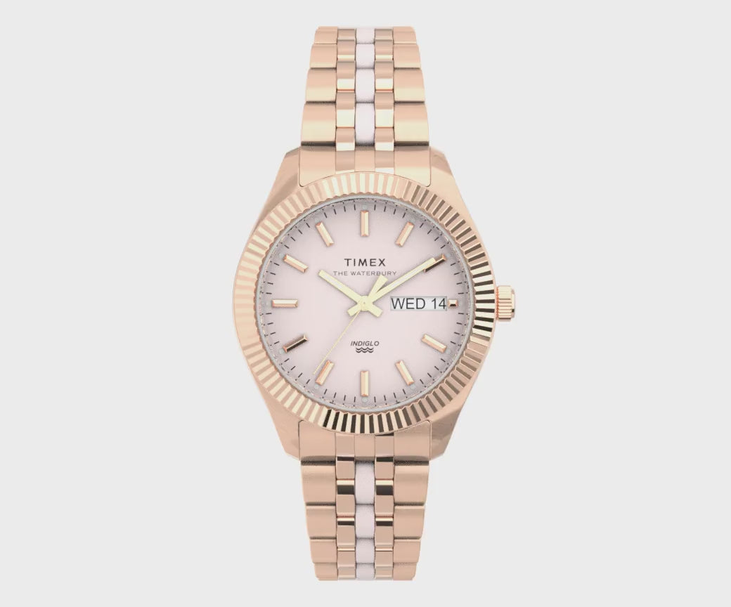 We all know the value of time. But it's not about how much you make, it's about how much you have. How do you use your time? Timex wants to be your partner for life, so we have created a watch to suit your style with an original look designed with craftsmanship and detail. With a Rose Gold Stainless Steel band and a Pink dial, it's made of Stainless Steel which makes it very durable and reliable. It has a Stainless Steel Round Rose Gold case with a diameter of 36 mm And of course it has INDIGLO Night-Light with Night-Mode it will be a great watch for any occasion.
