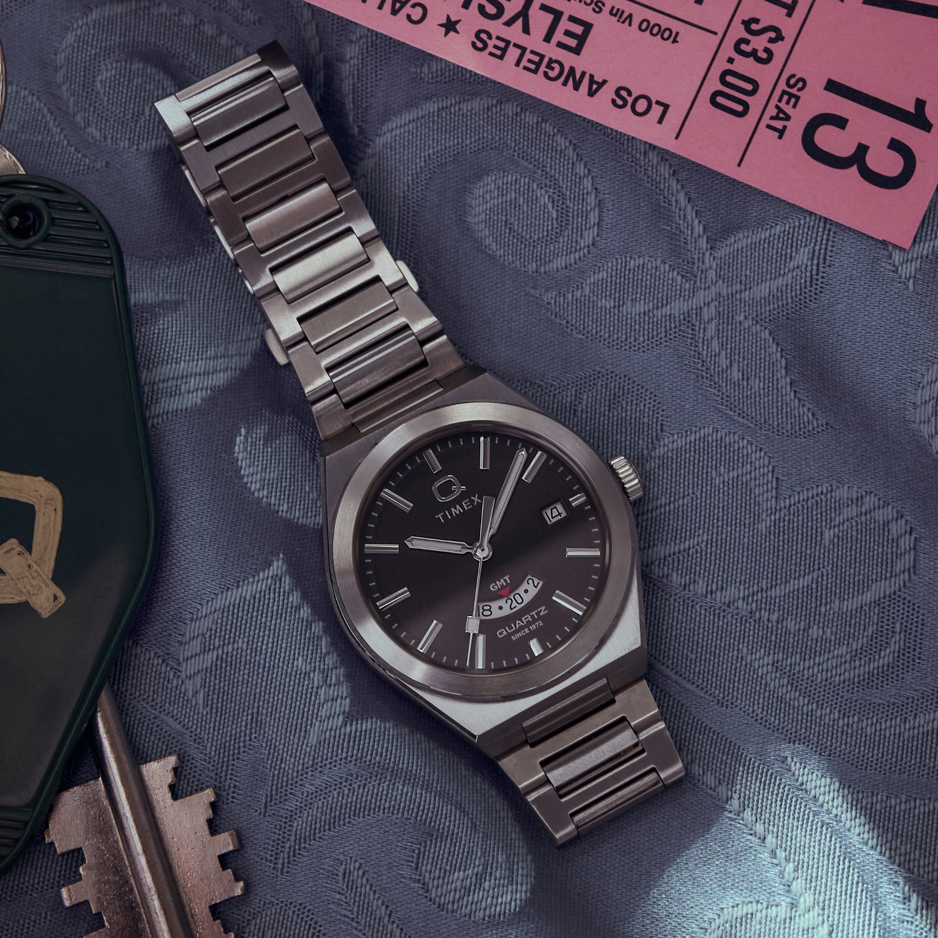 Experience sophistication with the TIMEX Men's Quartz Watch TW2Y12100. A sleek stainless steel design in silver with a black dial, 39mm case, and 5 ATM water resistance creates an elegant timepiece for your refined style.