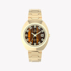 Retro-Inspired Design: The 39mm recycled stainless-steel tonneau case with all-around polished finish creates a commanding presence, blending ’70s boldness with modern craftsmanship. The tiger’s eye dial, with dimensional floating hour markers, offers a captivating visual depth that pays homage to vintage aesthetics.