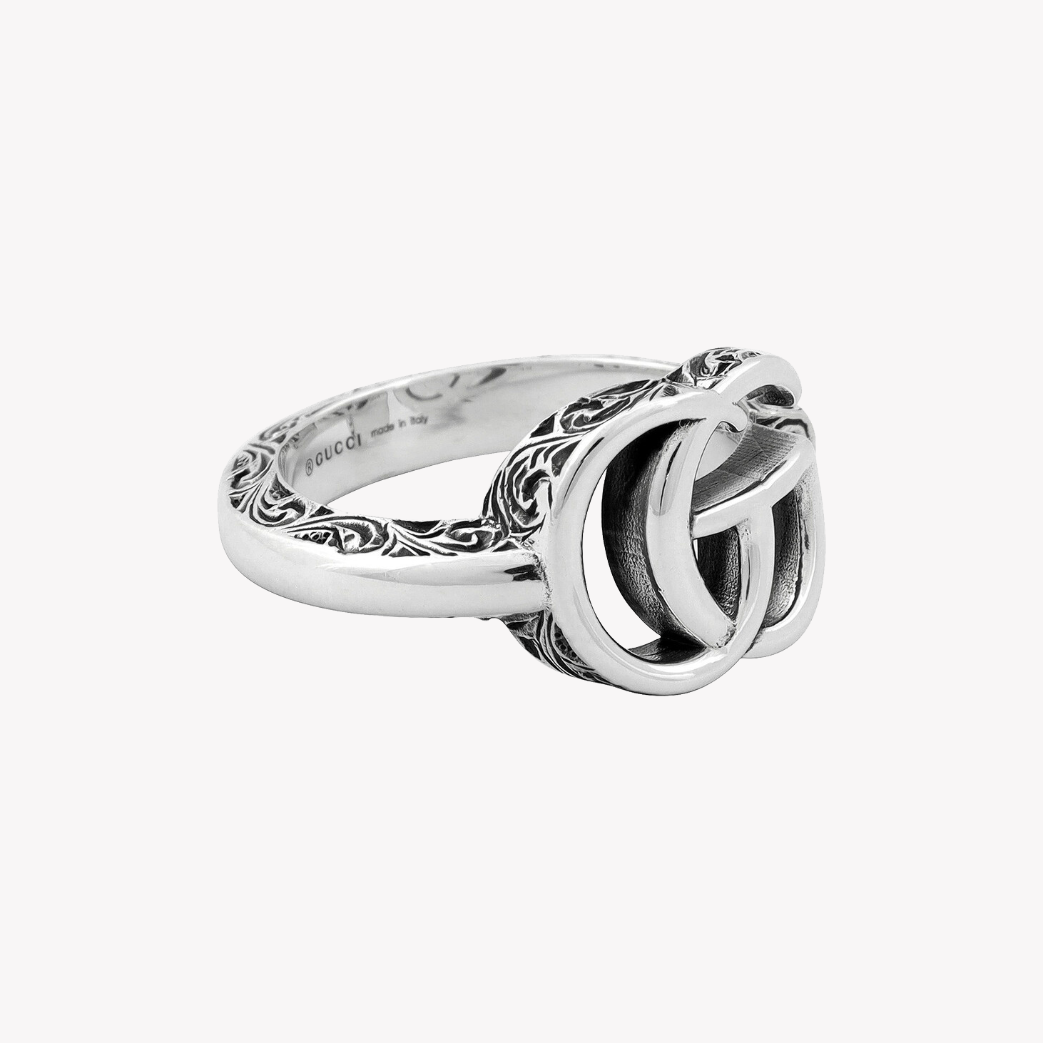 Shop the Gucci Aged Silver Double G Marmont Ring—luxurious Italian sterling silver jewelry with iconic Double G design. Elevate your style today!