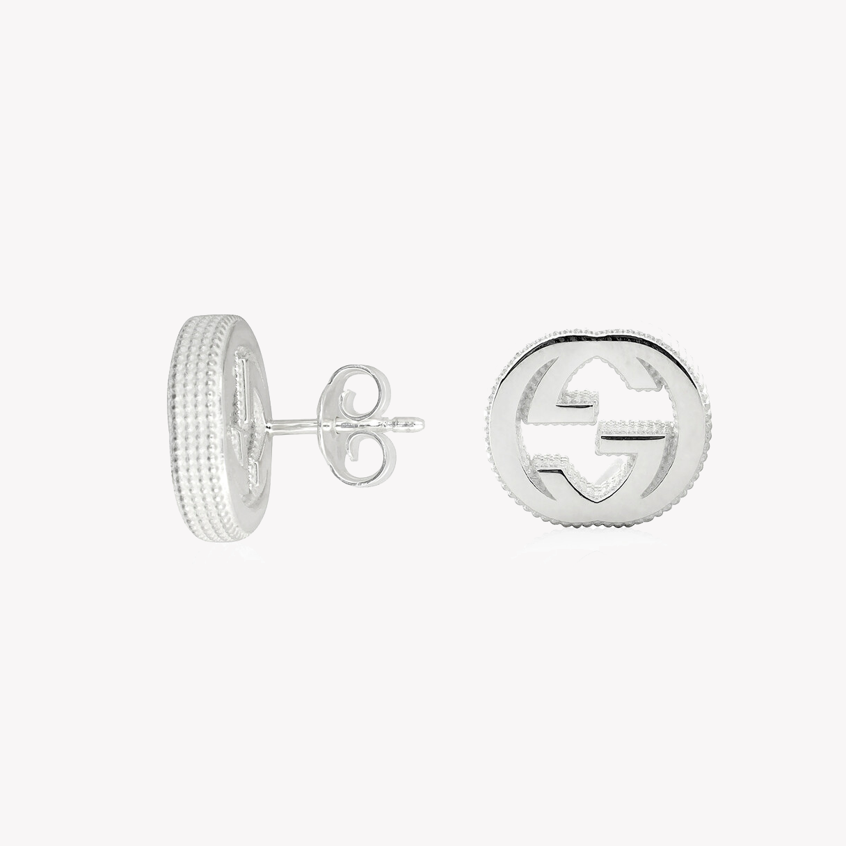 Shop Gucci Interlocking G Silver Stud Earrings—crafted in sterling silver with engraved G pattern. Elegant, lightweight, perfect for any style and occasion.