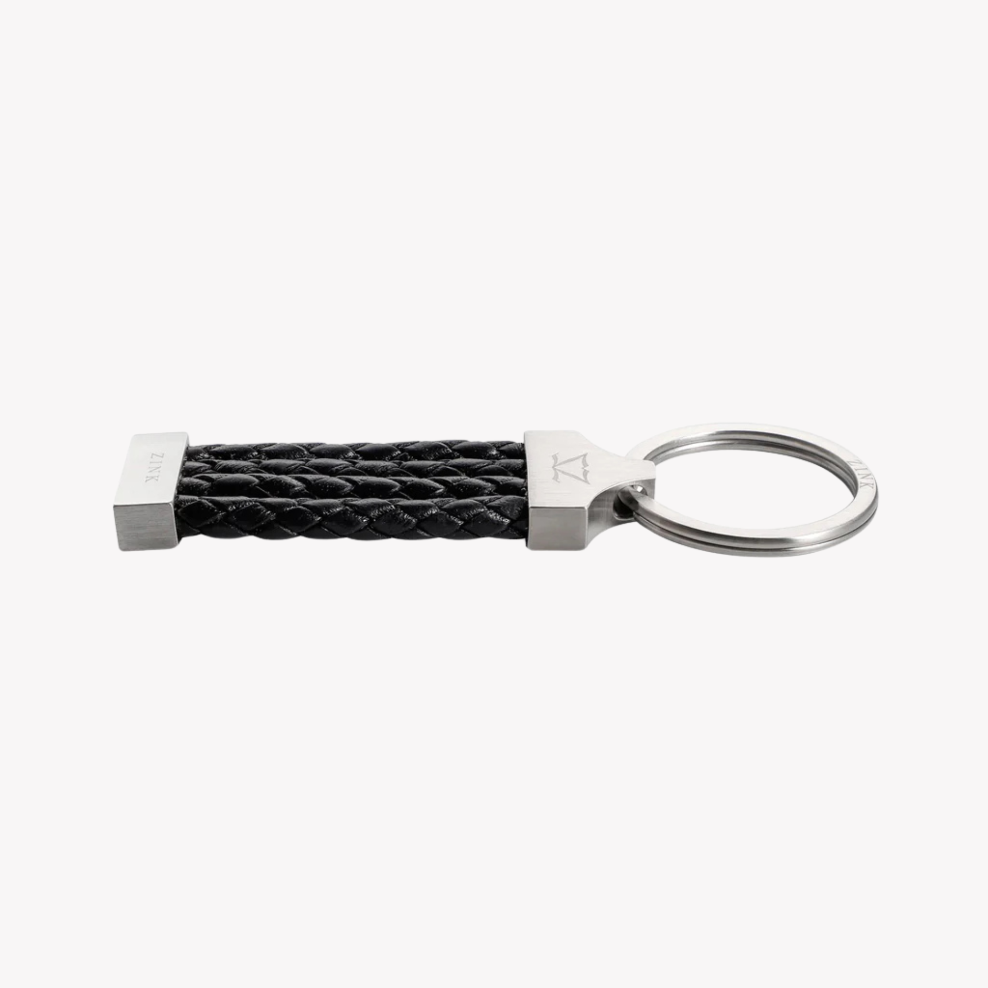Zink Keychain - Silver & Black - Stainless Steel & Leather | Zjkc008b