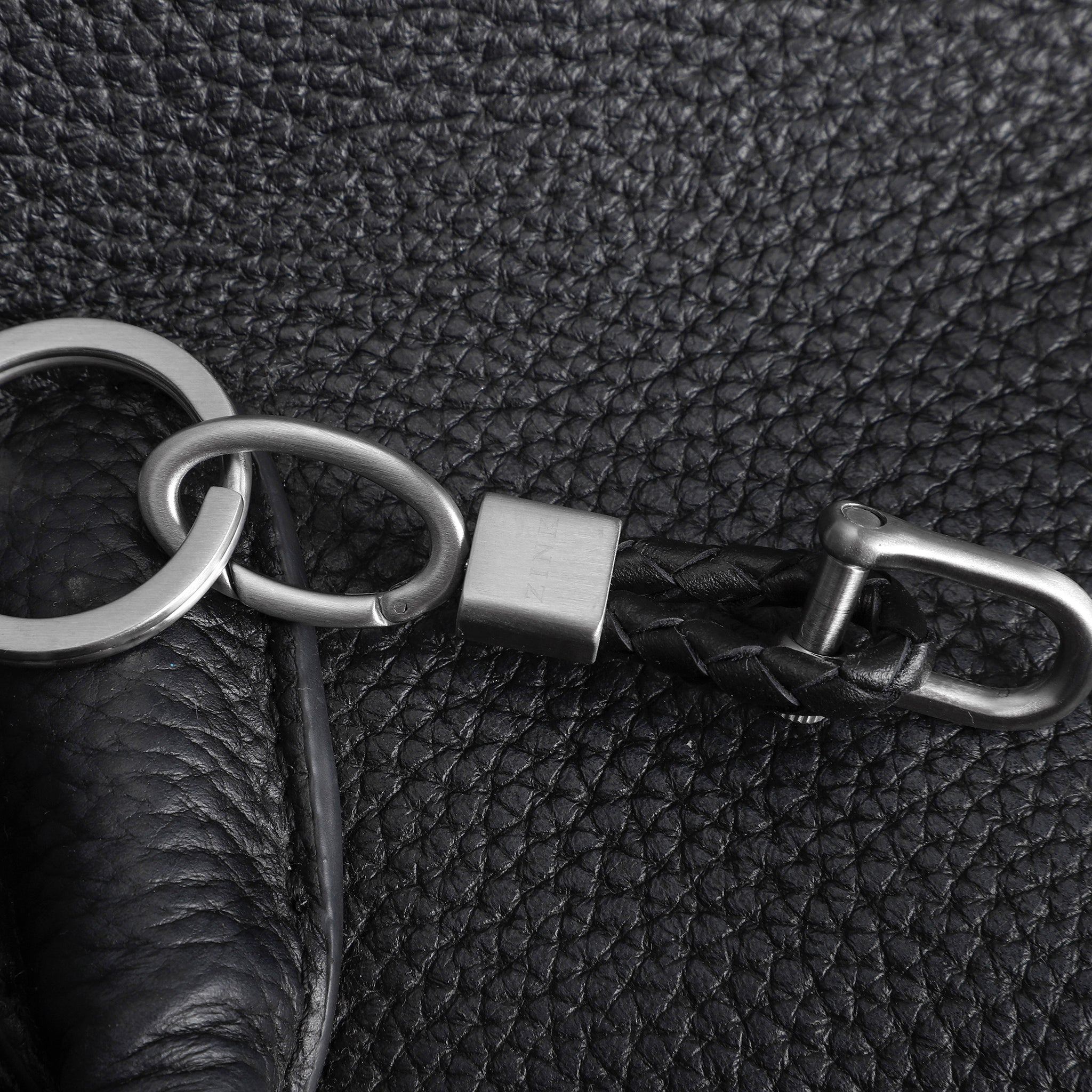 Zink Keychain - Silver & Black - Stainless Steel & Leather | Zjkc010b